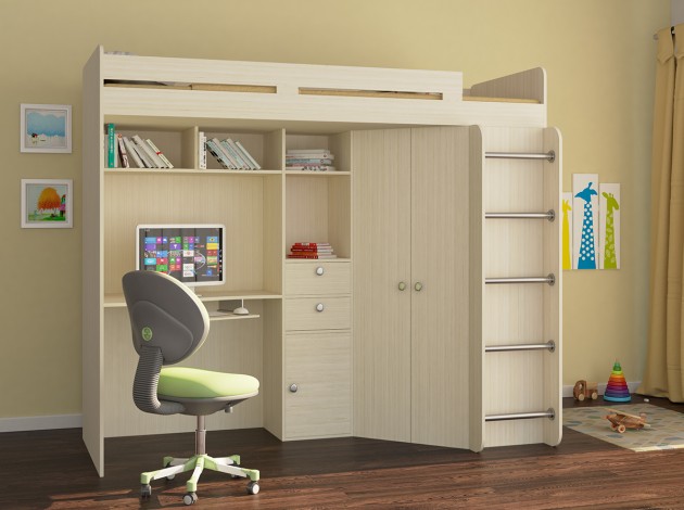 Здравствуйте,кровать бесспорно замечательная,мини офис ребенка)),но когда коснулось в использовании,оказалось несколько дизайнерских недоработок,причем очень существенных,во первых слишком низкий бортик,это одно,все острые углы с внутренней стороны,т.е.легко стесать кожу,кровать то рассчитана на деток от 5-6 лет,они крутятся,матрас 12 см,не высокий,в общем огромная недоработка,потом лестницаужас какая не удобная!Я попыталась подняться,чтобы заправить кровать,не получилось,на ней ещё удержаться надозаправляю на стремянке. В целом довольны.пришла без сколов,сборщик справился за пару часов.