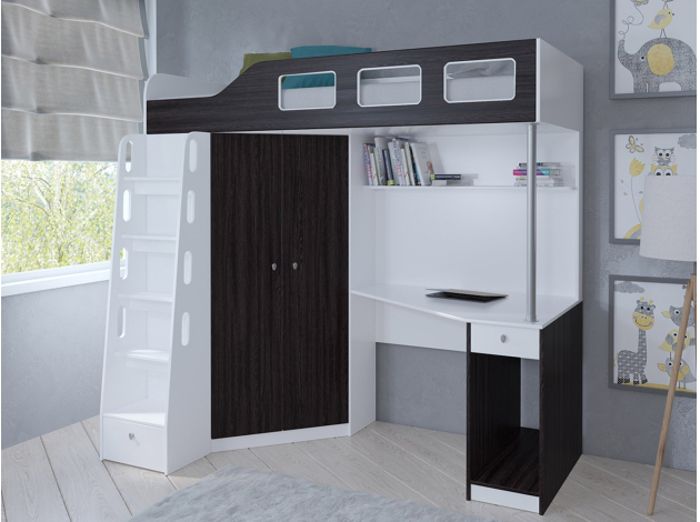 Самый оптимальный вариант кровати чердака - компактная, красивая и удобная) шкаф вместительный, есть полки, штанга. Стол большой и вместе с тем компактный, уроки удобно за ним будет делать. Два ящика, полка над столом. Купили для сына 6 лет, для детей помладше наверно будет неудобным в плане залегания и слезания - ступени металлические штанги, скользкие, есть выступ в конце лестницы, через него маленьким сложно будет перелазить. Отдельно про сам магазин - порадовала быстрая доставка в Самару, быстрое реагирование на вопросы в вайбер чате, вежливость и профессионализм. Кровать пришла в целости, собрали сами, инструкция конечно не для дилетантов, но собрать самим реально, если есть опыт