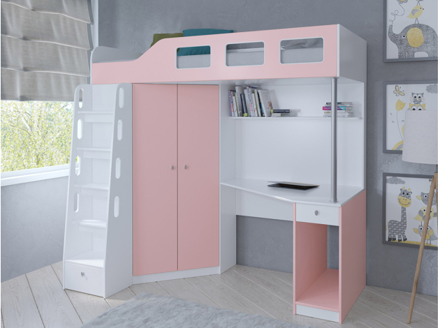 Кровать-чердак Астра-7 поможет оформить стильное и практичное пространство в детской. Разнообразие цветовых решений позволит подобрать комплекс под любой интерьер. Широкая лестница позволит легко взобраться на второй этаж, а в небольшом ящике в основании лесенки будет удобно хранить различные мелочи.