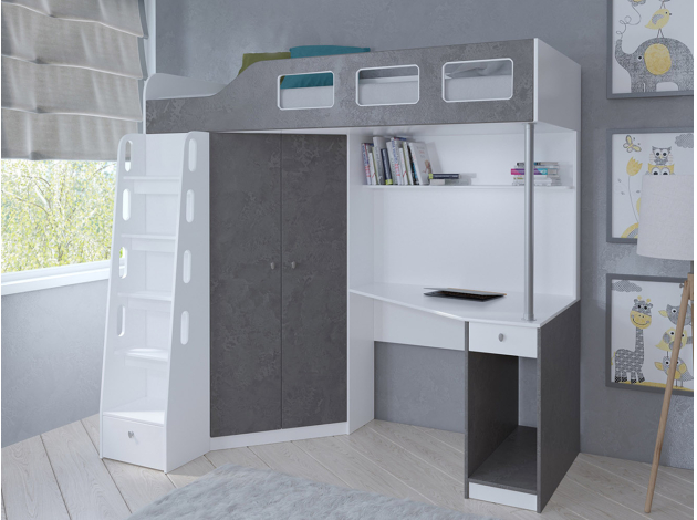 Кровать-чердак Астра 7 Белый Железный камень