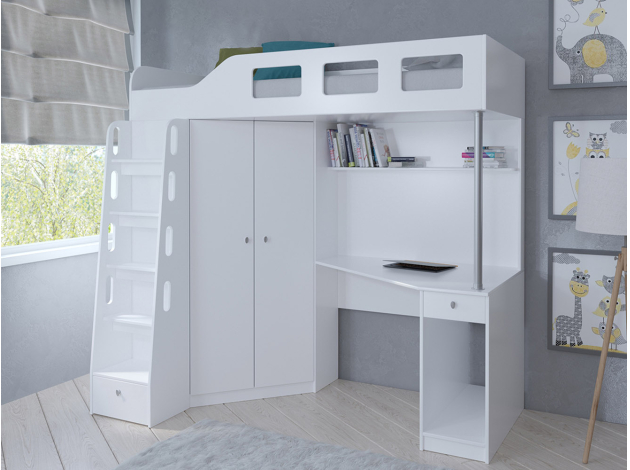 Самый оптимальный вариант кровати чердака - компактная, красивая и удобная) шкаф вместительный, есть полки, штанга. Стол большой и вместе с тем компактный, уроки удобно за ним будет делать. Два ящика, полка над столом. Купили для сына 6 лет, для детей помладше наверно будет неудобным в плане залегания и слезания - ступени металлические штанги, скользкие, есть выступ в конце лестницы, через него маленьким сложно будет перелазить. Отдельно про сам магазин - порадовала быстрая доставка в Самару, быстрое реагирование на вопросы в вайбер чате, вежливость и профессионализм. Кровать пришла в целости, собрали сами, инструкция конечно не для дилетантов, но собрать самим реально, если есть опыт