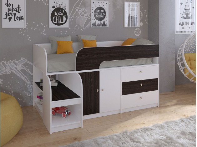 Кровать-чердак Астра-9/1 станет роскошной находкой для ценителей компактности, практичности и функциональности. Большое количество мест для хранения вещей и игрушек поможет малышу самому научиться наводить порядок. Все края имеют безопасные скругления.