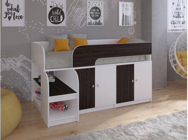 Кровать-чердак Астра 9/2 Белый / Венге