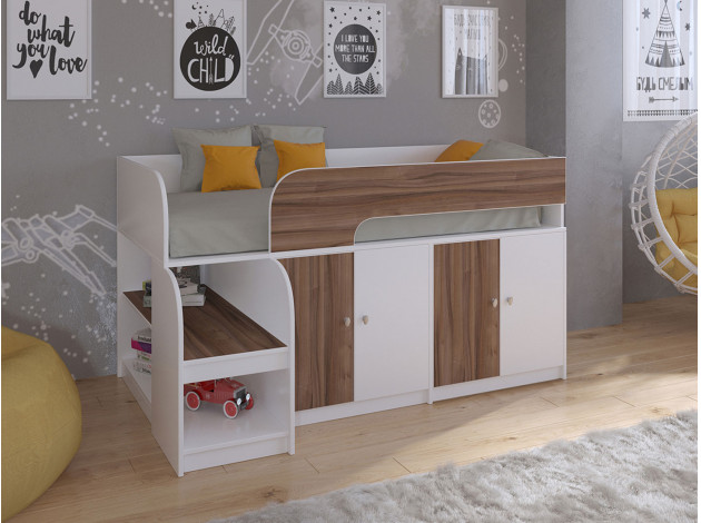 Кровать-чердак Астра 9/2 Белый / Орех