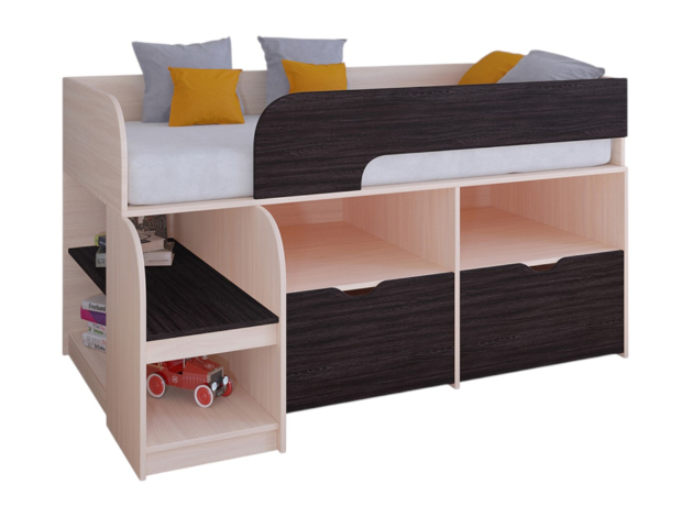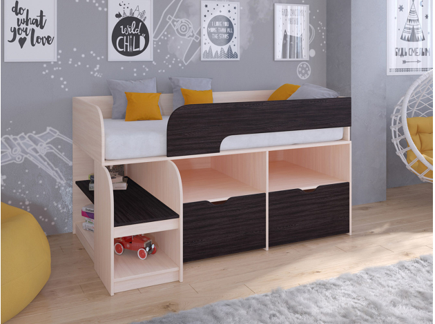 • Кровать-чердак Астра-9/6 является функциональным предметом мебели, выполненным в ярком и привлекательном стиле. Комплекс имеет небольшой размер и станет идеальным вариантом для маленькой детской комнаты.