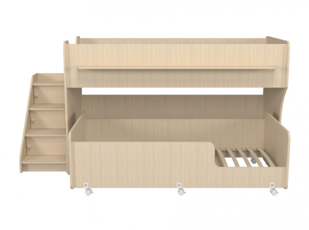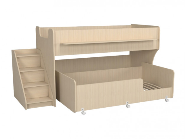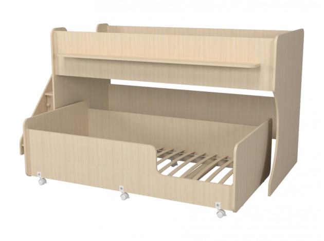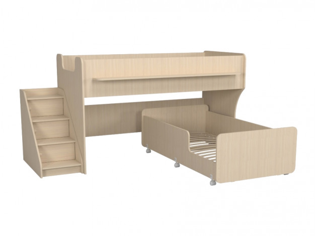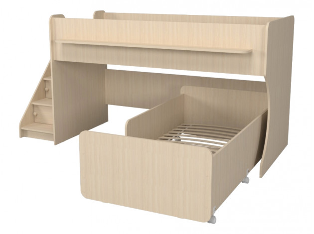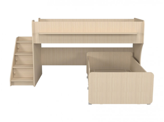 Кровать-чердак Минки — функциональная модель, которая трансформируется в несколько разных мебельных изделий: двухъярусную кровать, кровать-чердак со спальным местом наверху и игровой или рабочей зоной внизу. В комплект входит удобная лестница с широкими ступенями и ящиками.
