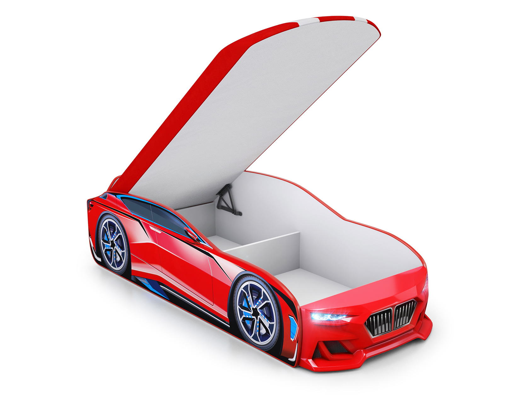Кровать-машина Бокстер Нью — это реалистичный автокар с объемным бампером, встроенным матрасом и подсветкой фар. Просторная модель станет идеальным местом для сна, а уникальный дизайн подарит яркие эмоции во время игр. В разобранном виде кровать помещается в одной коробке, поэтому ее можно перевозить в легковом автомобиле.
