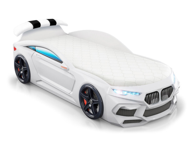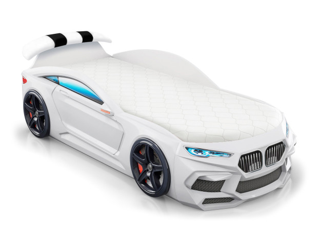 Кровать-машина Ромео Белый Без ящика С мягким спойлером