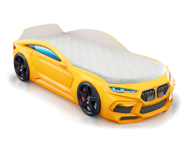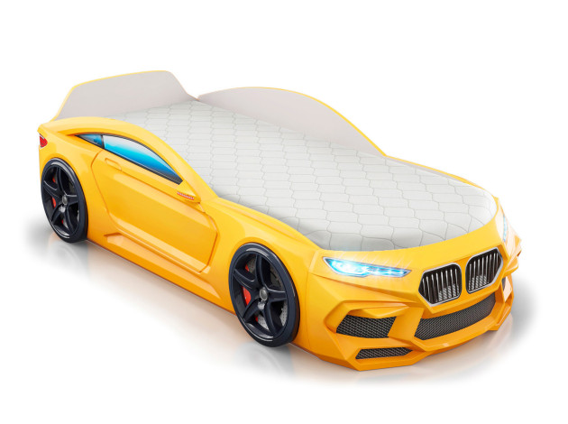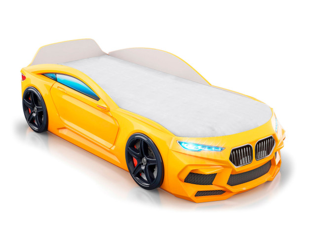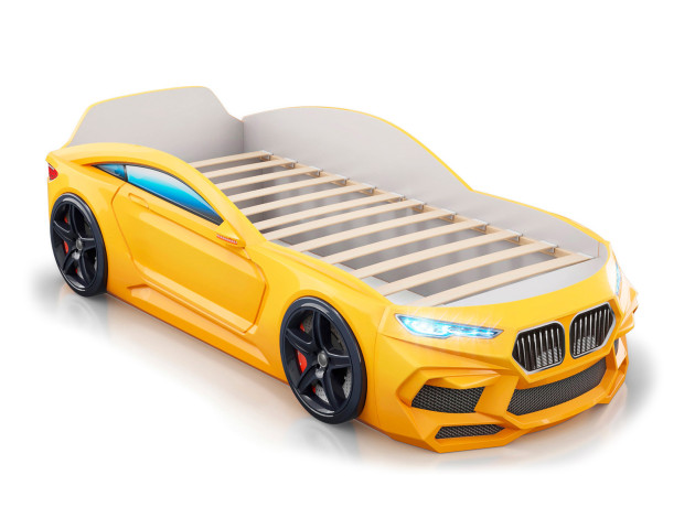 Кровать-машина Ромео Желтый Без ящика Без мягкого спойлера