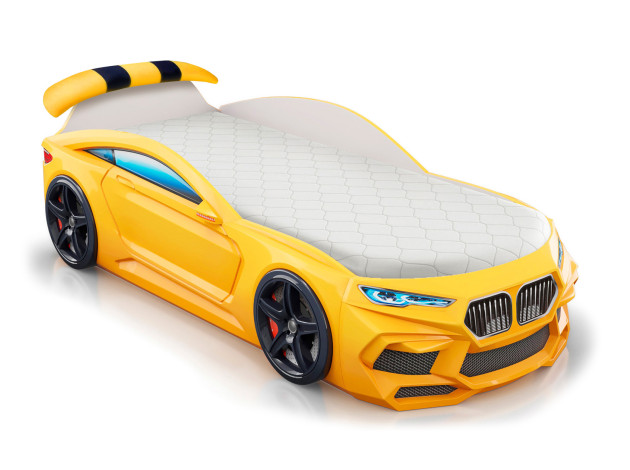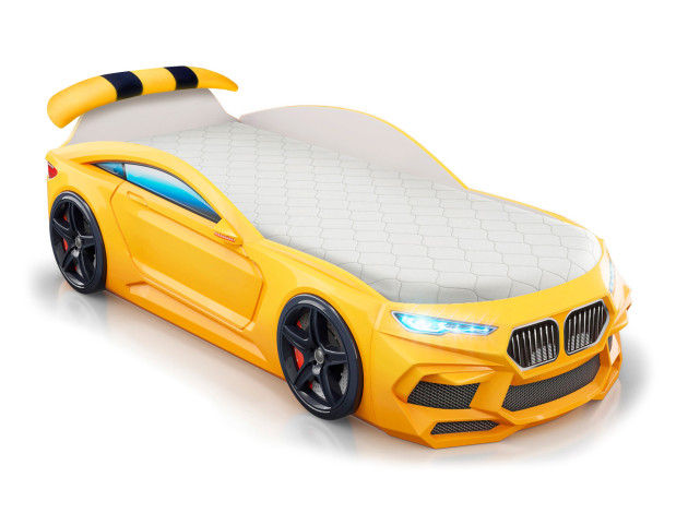 Кровать-машина Ромео Желтый Без ящика С мягким спойлером