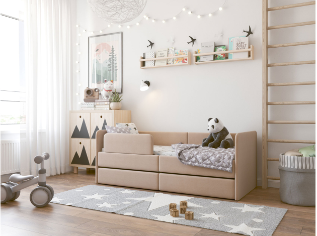 Детская кровать Донни Латте, микровелюр С бортиком С ящиками