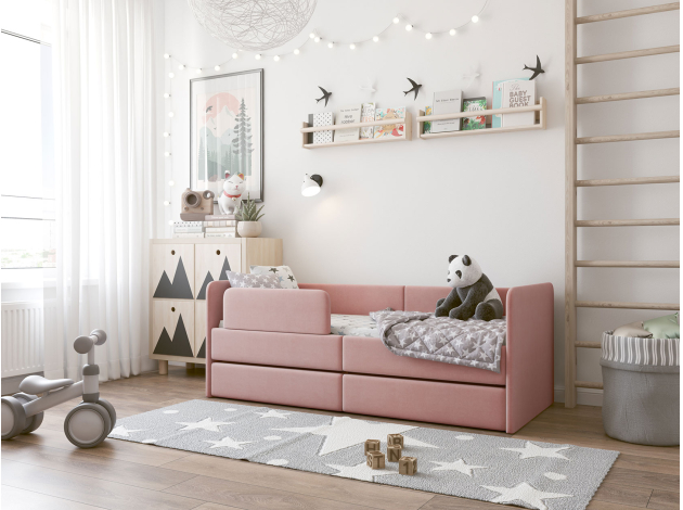 Детская кровать Донни Роза, микровелюр С бортиком С ящиками