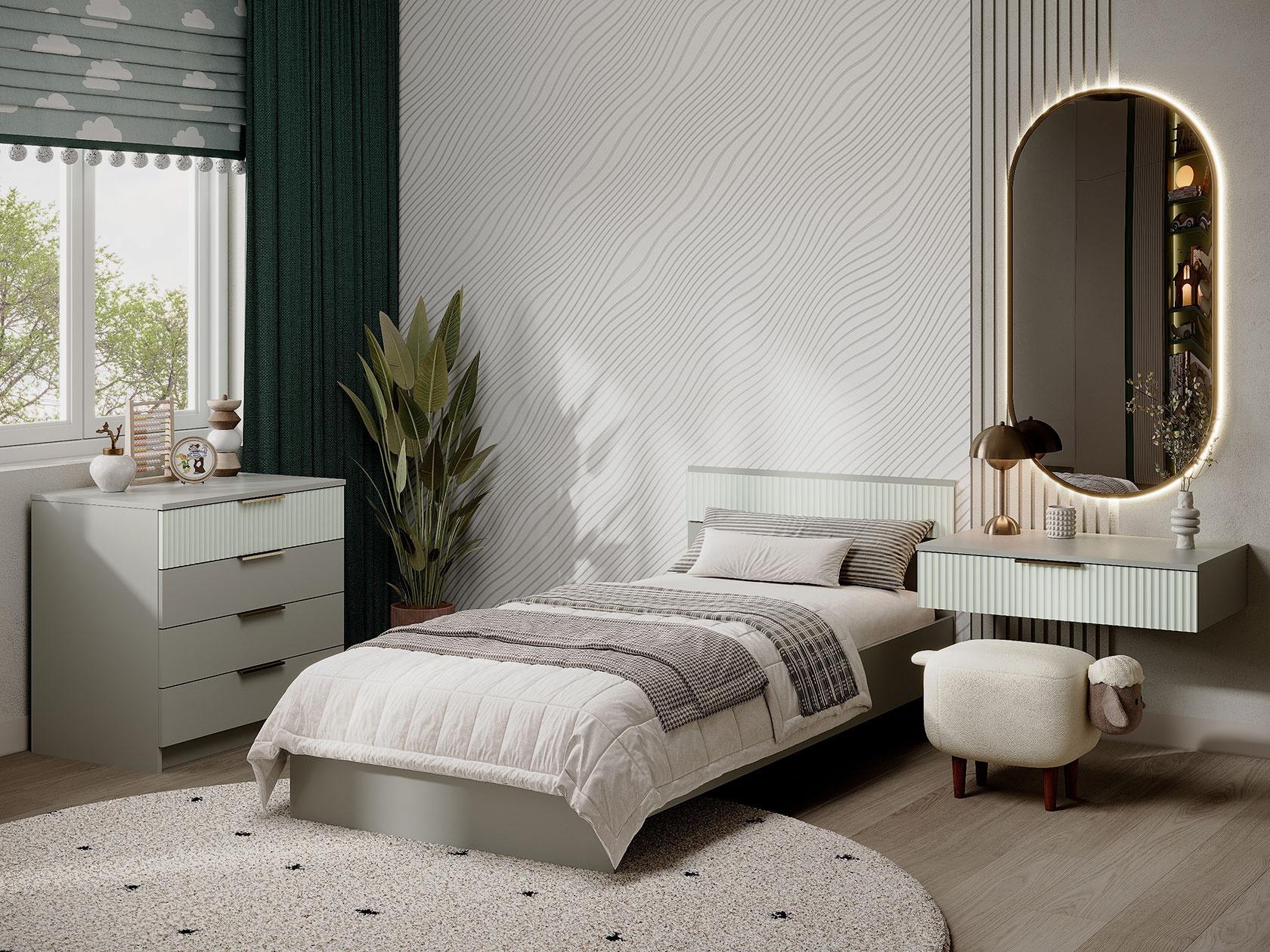 Кровать Джерси — современное и удобное спальное место для школьника или подростка. Простые линии и нейтральный оттенок гармонично сочетаются с разными интерьерами. Одно из преимуществ модели — универсальный дизайн, который подходит как для мальчиков, так и для девочек.