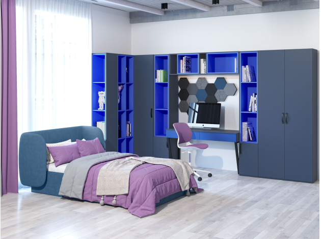 Кровать Джинкс ПМ станет любимым местом отдыха и обеспечит качественный сон. Оригинальный дизайн изголовья украсит комнату. Небольшие бортики на нём добавят удобства во время чтения в кровати. Основание из ламелей создает хороший приток воздуха к матрасу, а встроенный бельевой короб помогает аккуратно хранить постельные принадлежности.