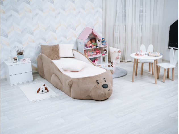 Уникальный дизайн детской кровати Мишка вызовет настоящий восторг у ребенка. Уютная и комфортабельная модель позаботится о безопасности малыша во время отдыха и активных игр. Бортики не дадут упасть во время сна, а мягкая обивка подарит приятные тактильные ощущения.