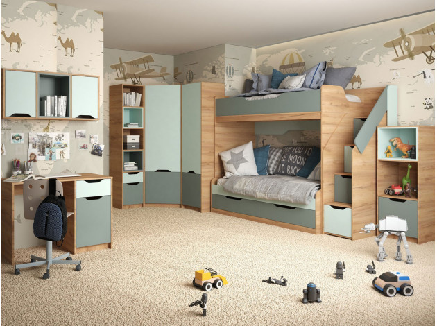 Детская кровать Рич объединяет комфортное место для сна и удобную систему хранения. Фасады ящиков выполнены в необычном сочетании оттенков и дополнены эргономичными вырезами вместо ручек. Модель станет практичным решением для оформления детской или подростковой комнаты.