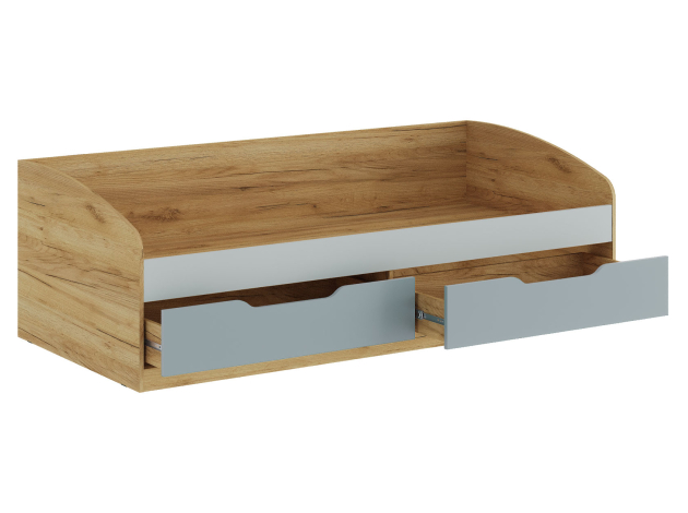 Детская кровать Рич объединяет комфортное место для сна и удобную систему хранения. Фасады ящиков выполнены в необычном сочетании оттенков и дополнены эргономичными вырезами вместо ручек. Модель станет практичным решением для оформления детской или подростковой комнаты.