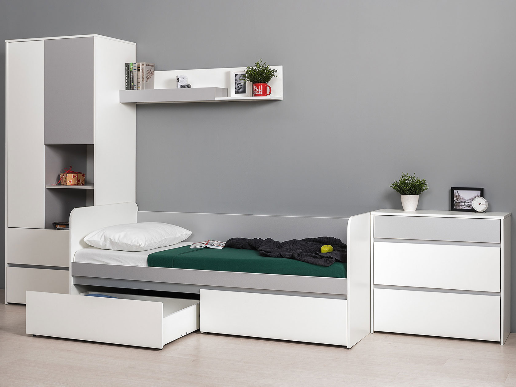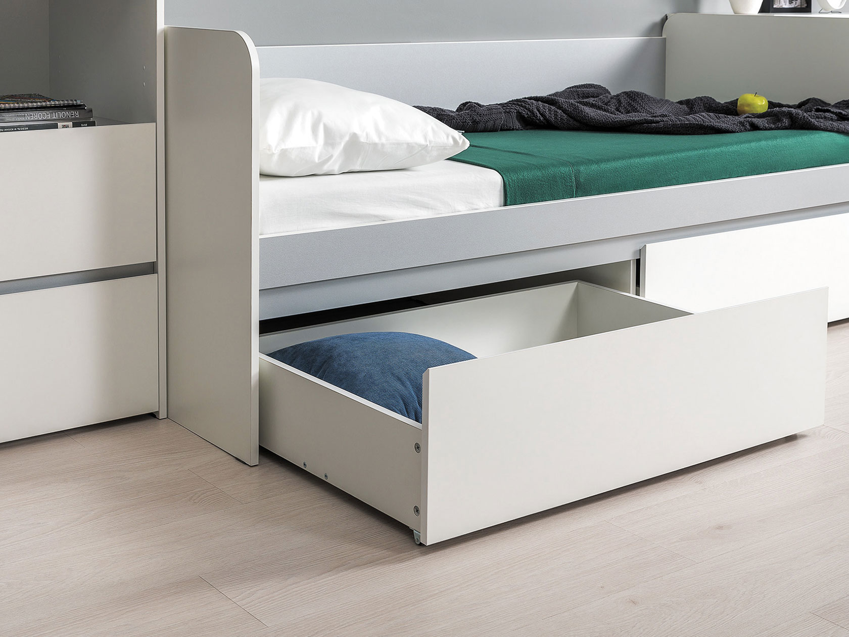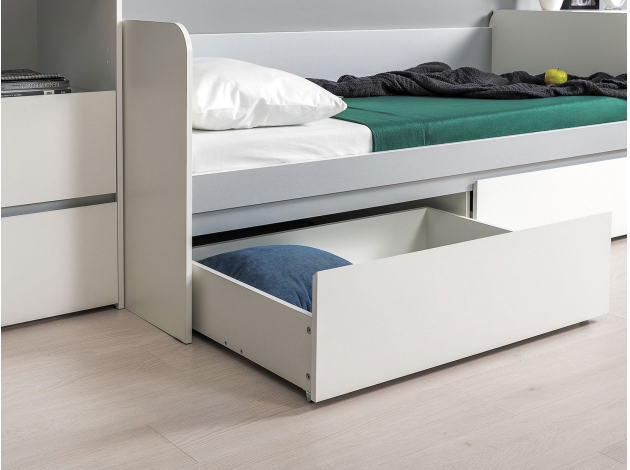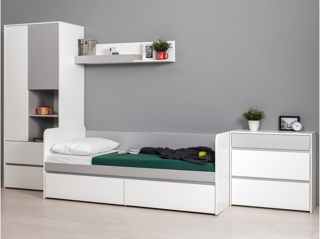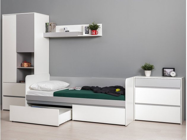 Кровать Торонто поможет обустроить комфортный уголок для отдыха. На боковинах отсутствуют острые углы, а ящики в основании создают место для хранения постельного белья. Удобная спинка и бортики позволяют использовать модель как в качестве дивана, так и спального места.