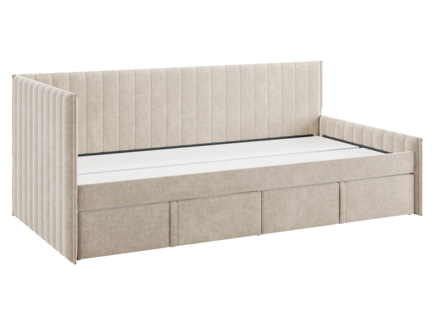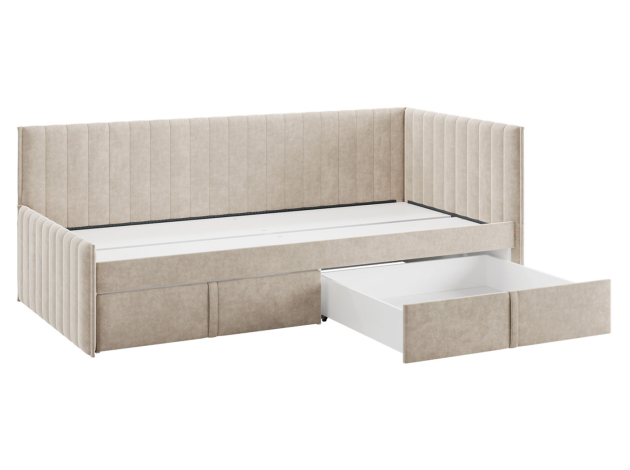 • Тахта Твикс позволит обустроить уютное место для сна и не выйдет из моды, пока ребенок взрослеет. Модель можно использовать в качестве дивана. Мягкая спинка и боковая часть обиты тканью, что создает дополнительные безопасность и комфорт.