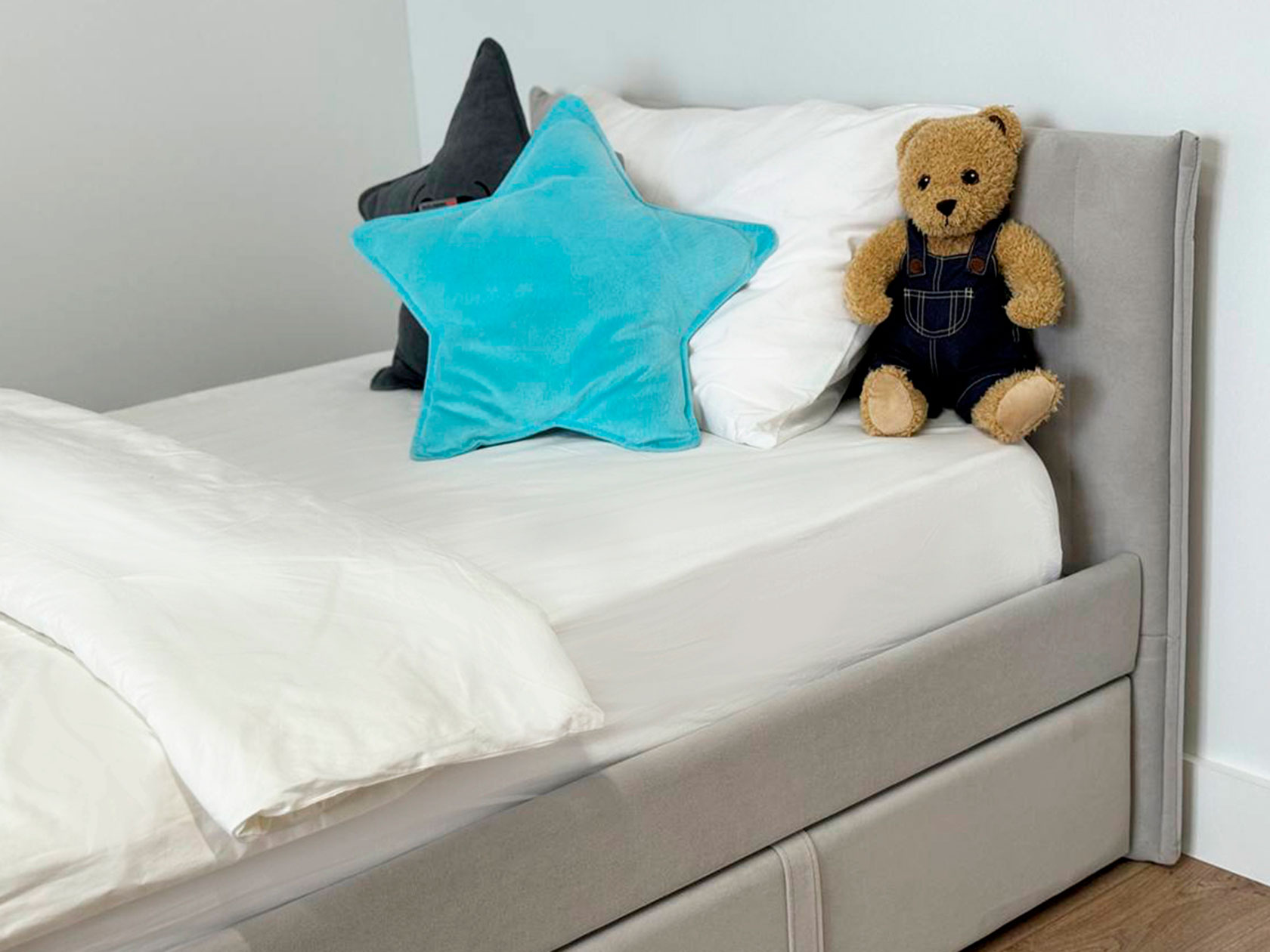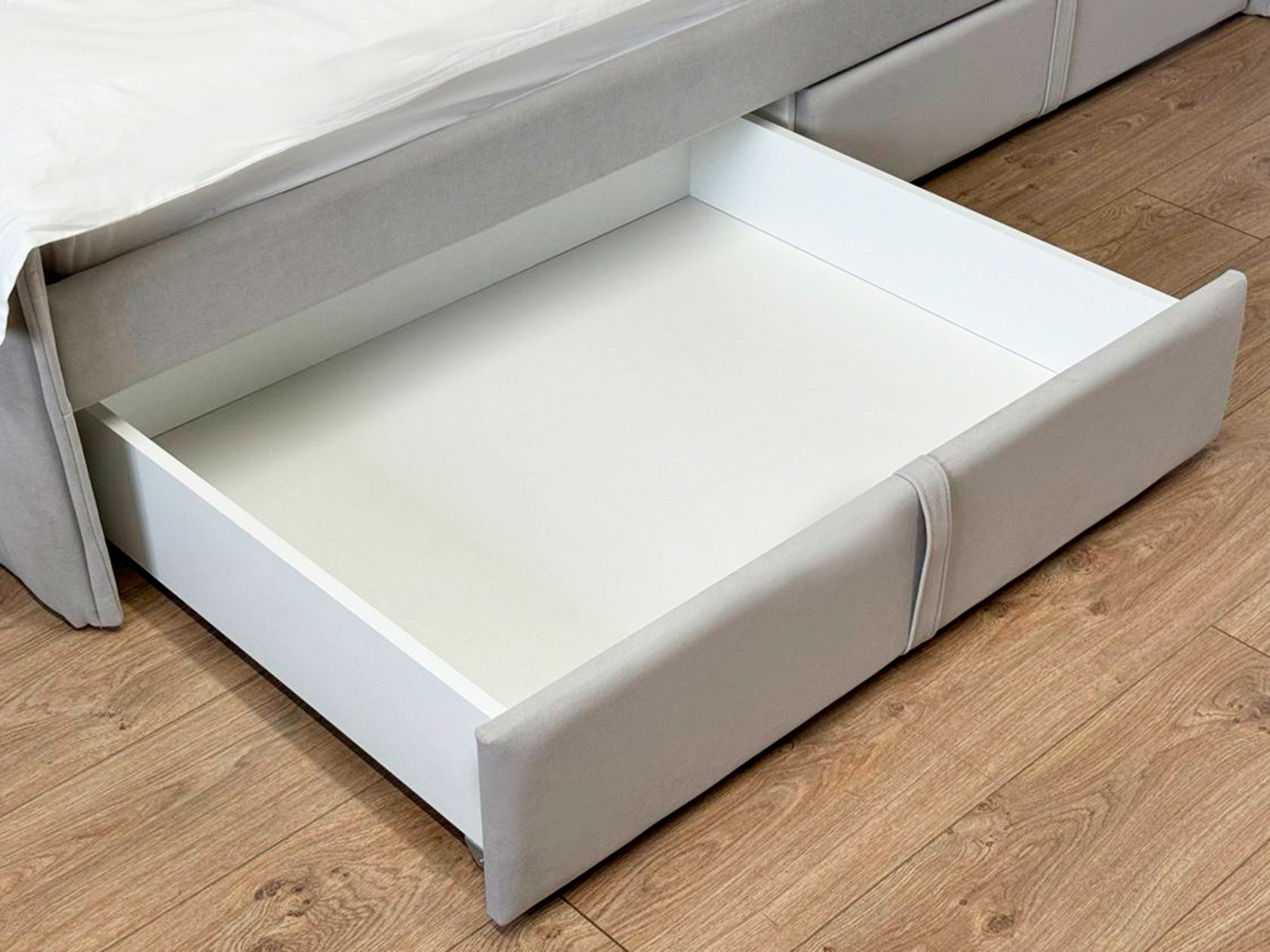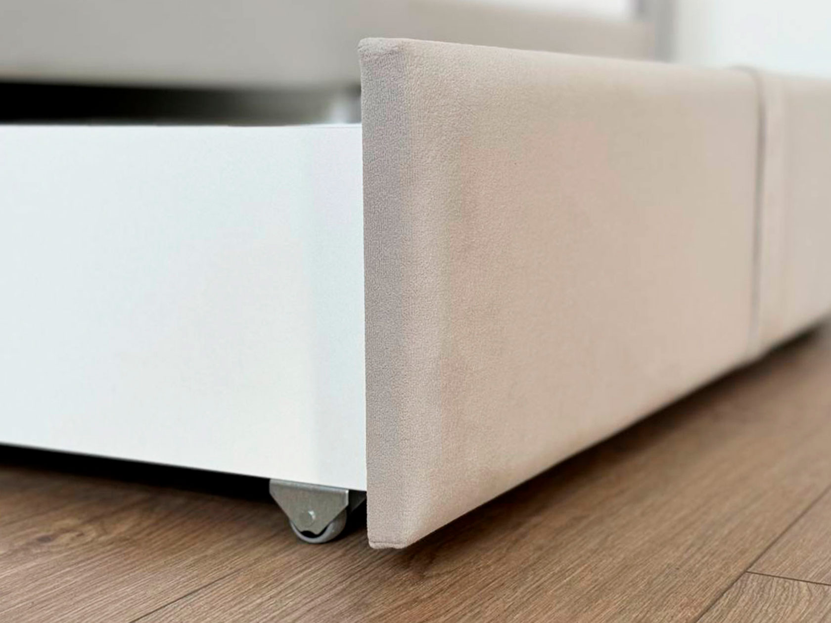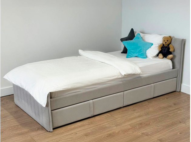 Кровать Твикс сделает комнату особенно уютной и привлекательной. Изголовье с бархатистой обивкой обеспечит удобство во время чтения. Мягкая конструкция создает дополнительную безопасность при эксплуатации. Выкатные ящики подходят для хранения постельных принадлежностей, игрушек и других вещей.