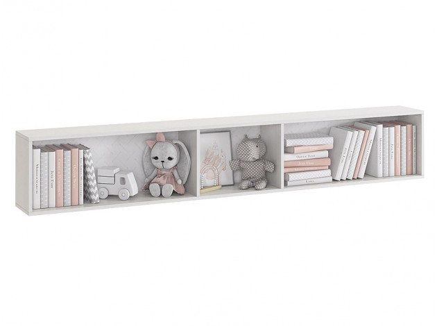 Полка имеет одну открытую нишу, на которой можно расставить игрушки или сувениры, и две закрытые ниши для хранения книг, учебников и прочих вещей.