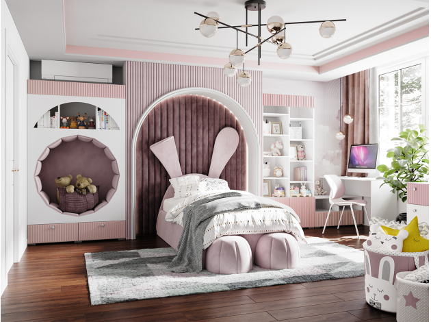 Детский шкаф Алиса Комби — отличное решение для тех, кто ищет нестандартную мебель, которая развивает фантазию ребенка и помогает поддерживать порядок в комнате. Модель представляет собой сочетание системы хранения и уютной зоны отдыха. Оригинальная форма ниши превращает обычный шкаф в интерактивный элемент интерьера. Вертикальная конструкция занимает минимум полезной площади при максимальной функциональности. Выдвижные ящики легко управляются ребенком, а мягкая обивка приятна на ощупь и устойчива к износу.
