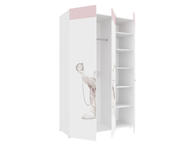 Детский шкаф Алиса станет украшением комнаты любой девочки. Очаровательный принт и нежные оттенки смотрятся легко и воздушно, создавая приятную атмосферу. Отделение со штангой и секция с полками позволят организовать удобное хранение необходимых вещей.