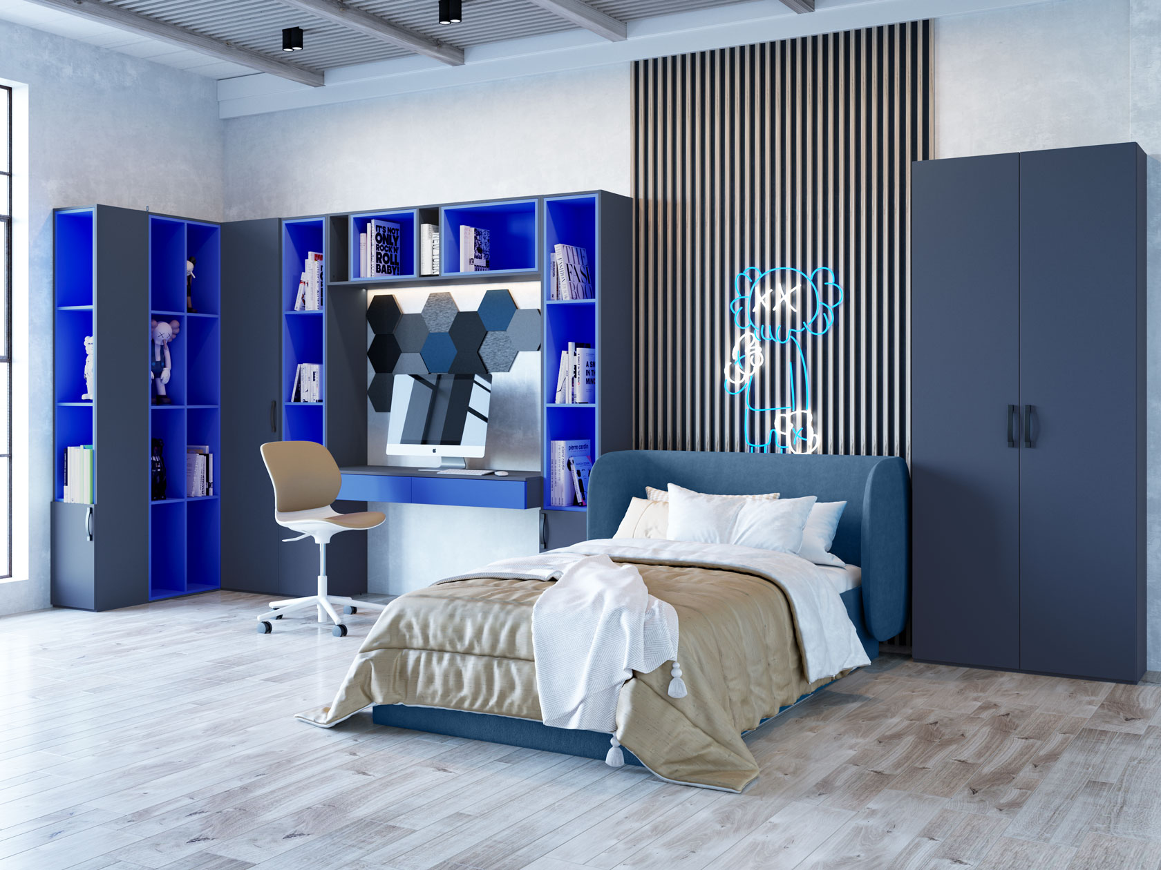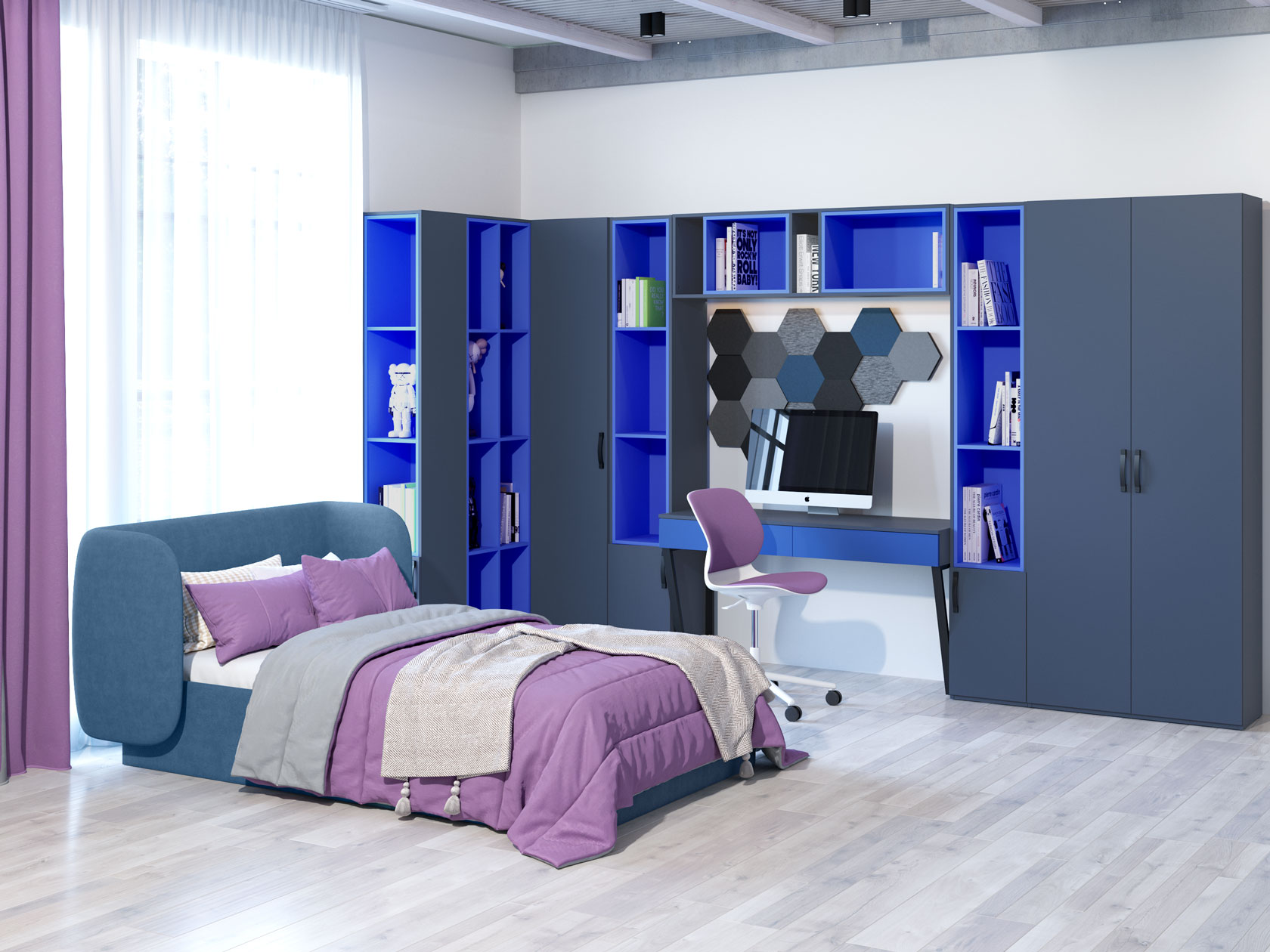 Детский шкаф Джинкс — оптимальное решение для порядка в одежде, обуви и аксессуарах. В нише со штангой можно аккуратно развесить платья, рубашки и пиджаки, а на полках — разместить вещи, которые удобно хранить в сложенном виде. В дизайне фасадов нет ничего лишнего, что позволяет адаптировать модель для любого современного интерьера.