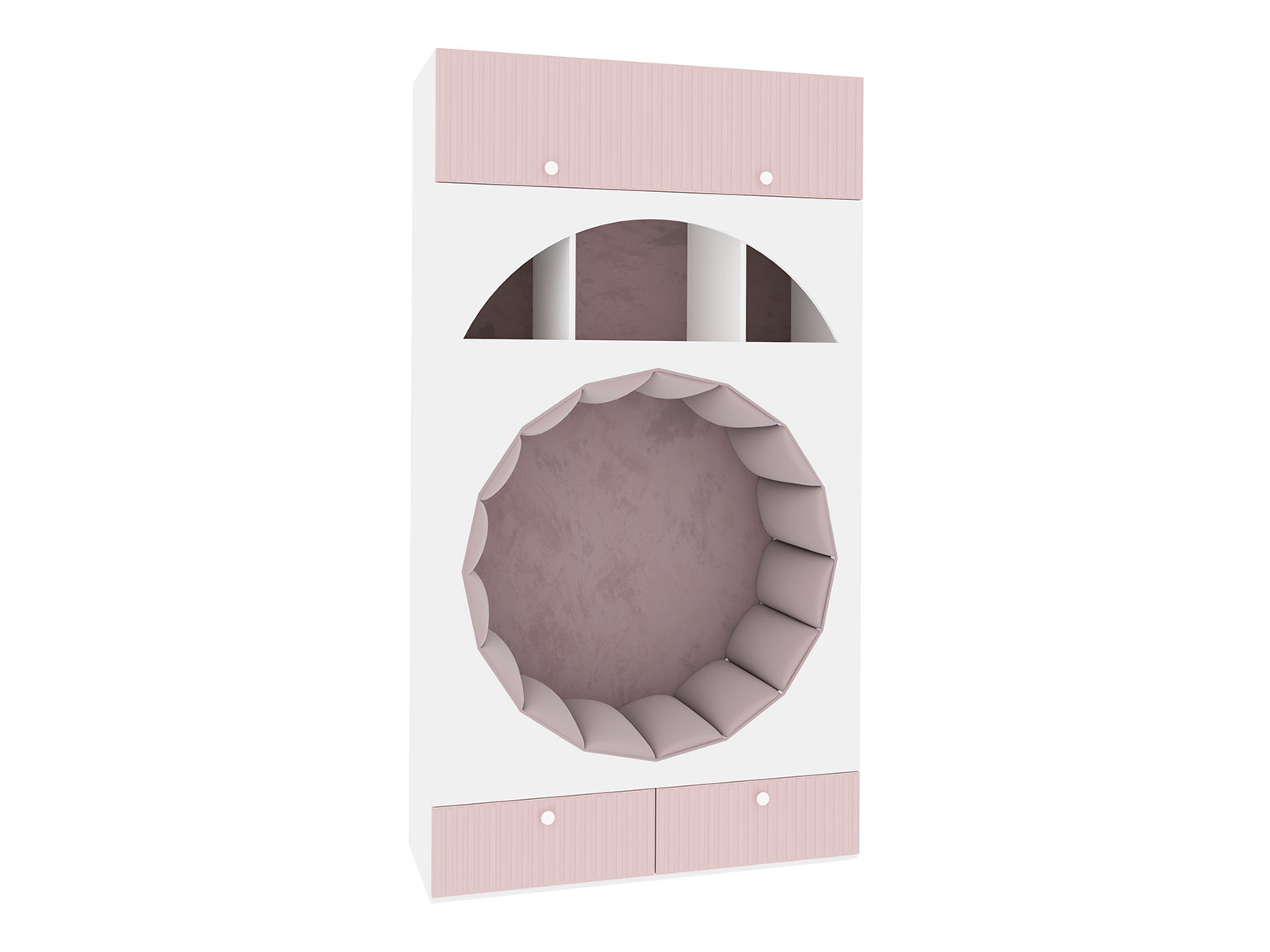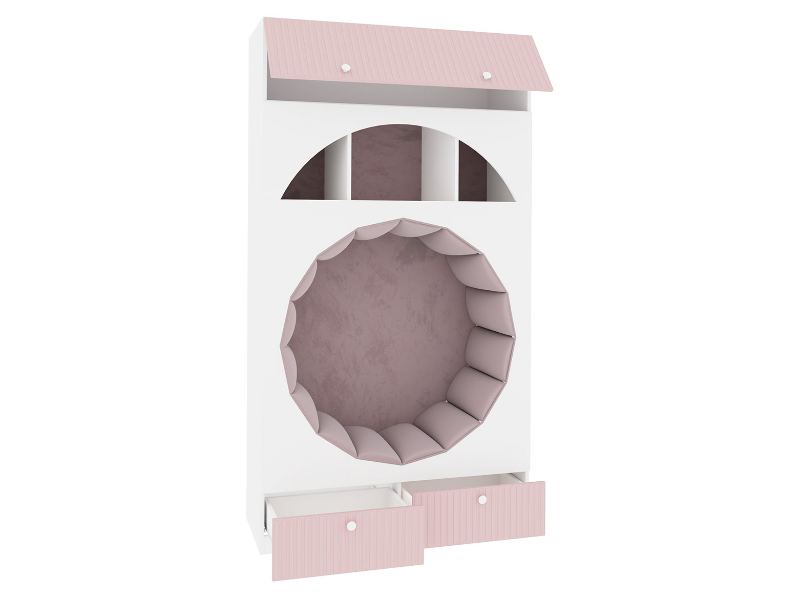 Детский шкаф Фокс — необычная модель, которая обязательно понравится ребенку. В выдвижных ящиках и на полках можно хранить вещи, игрушки, книги и рамки с фотографиями. Комфортабельное место для отдыха, обитое мягкой тканью, создаст уголок для уединения.