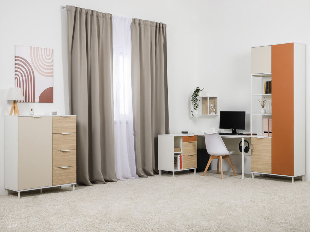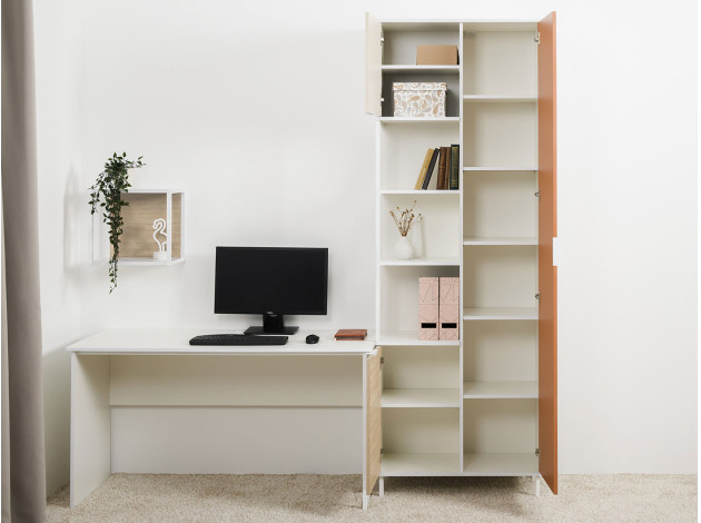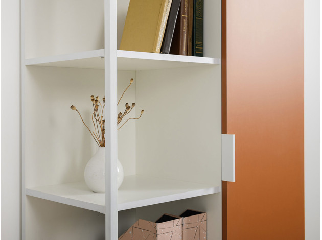 Детский шкаф Марвэл комбинированный решит вопросы хранения одежды и других важных вещей. Сочетание открытого стеллажа и закрытой секции с полками обеспечит место для книг, учебников, папок с документами и предметов гардероба. Фасады разных оттенков создают яркий, живой интерьер, а минималистичная фурнитура не отвлекает от самой мебели.