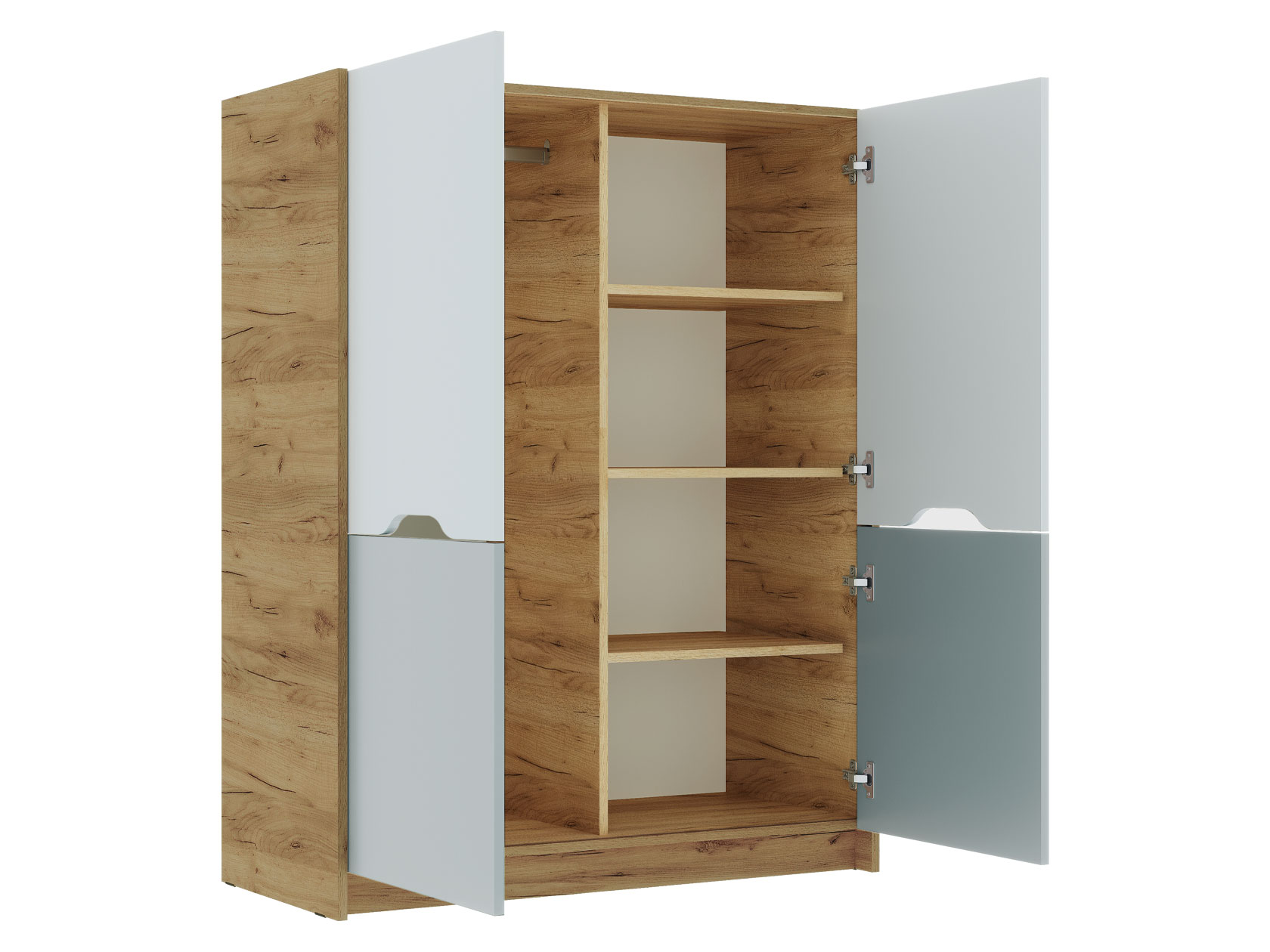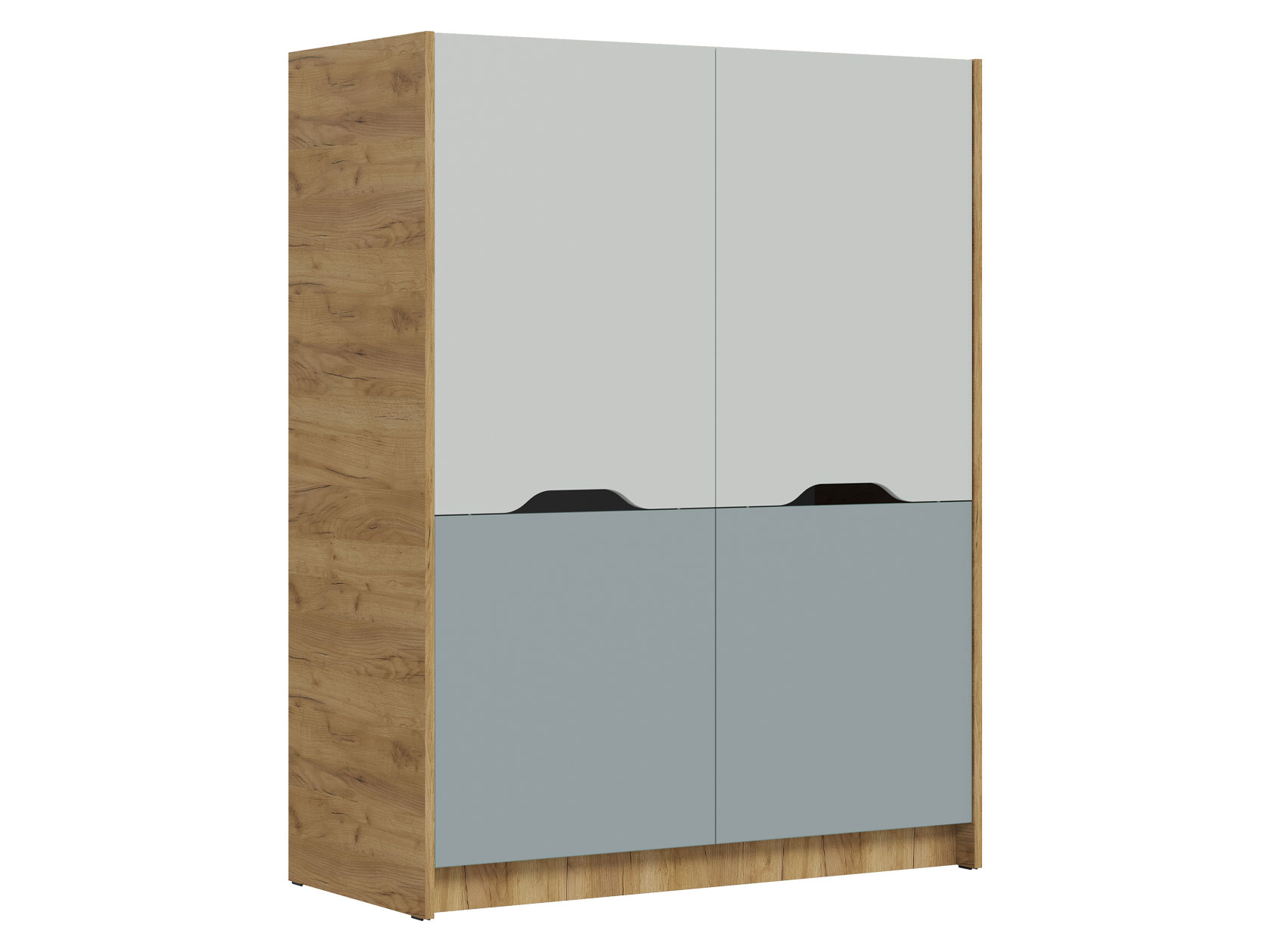 Детский шкаф Рич — стильная модель с оригинальным цветовым решением. Дверцы с ручками-вырезами открывают доступ к двум просторным секциям с полками и штангой. В таком шкафу найдется место для одежды, коробок с обувью или спортивной экипировки.