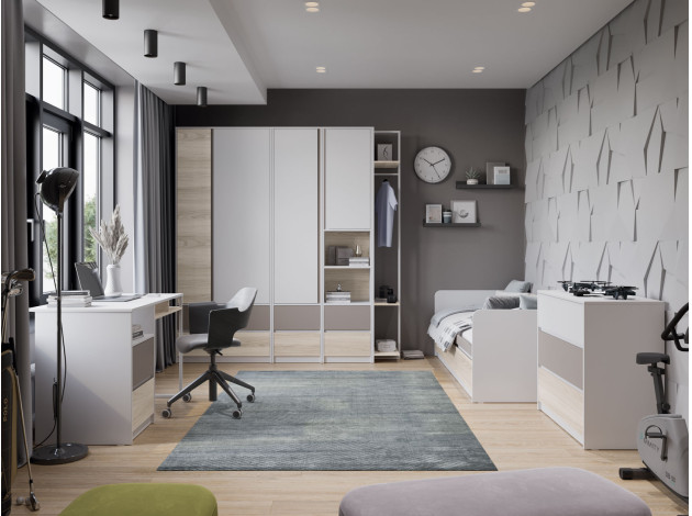 Детский шкаф Сканди Дуб Гарден / Белый / Глиняный серый