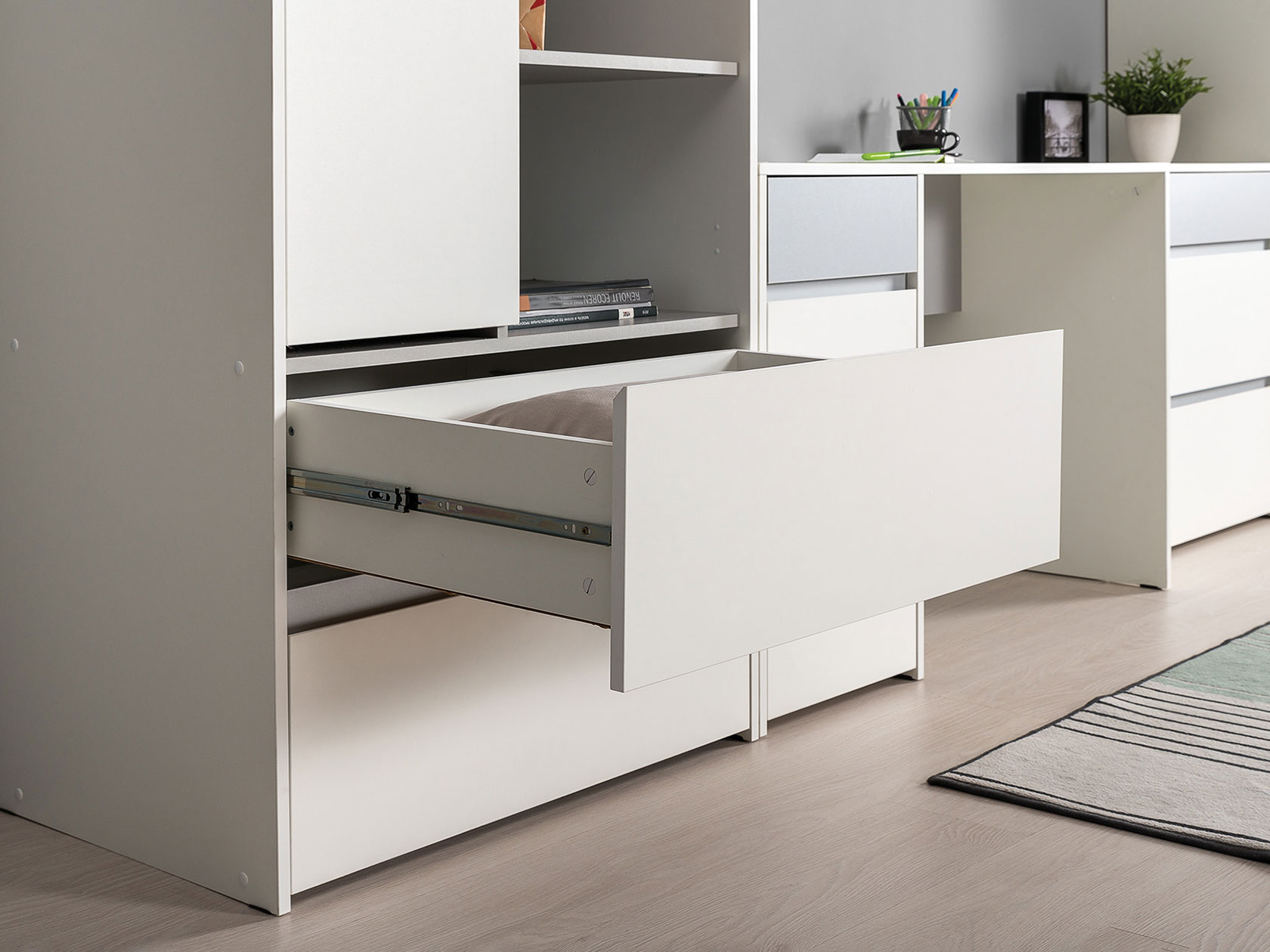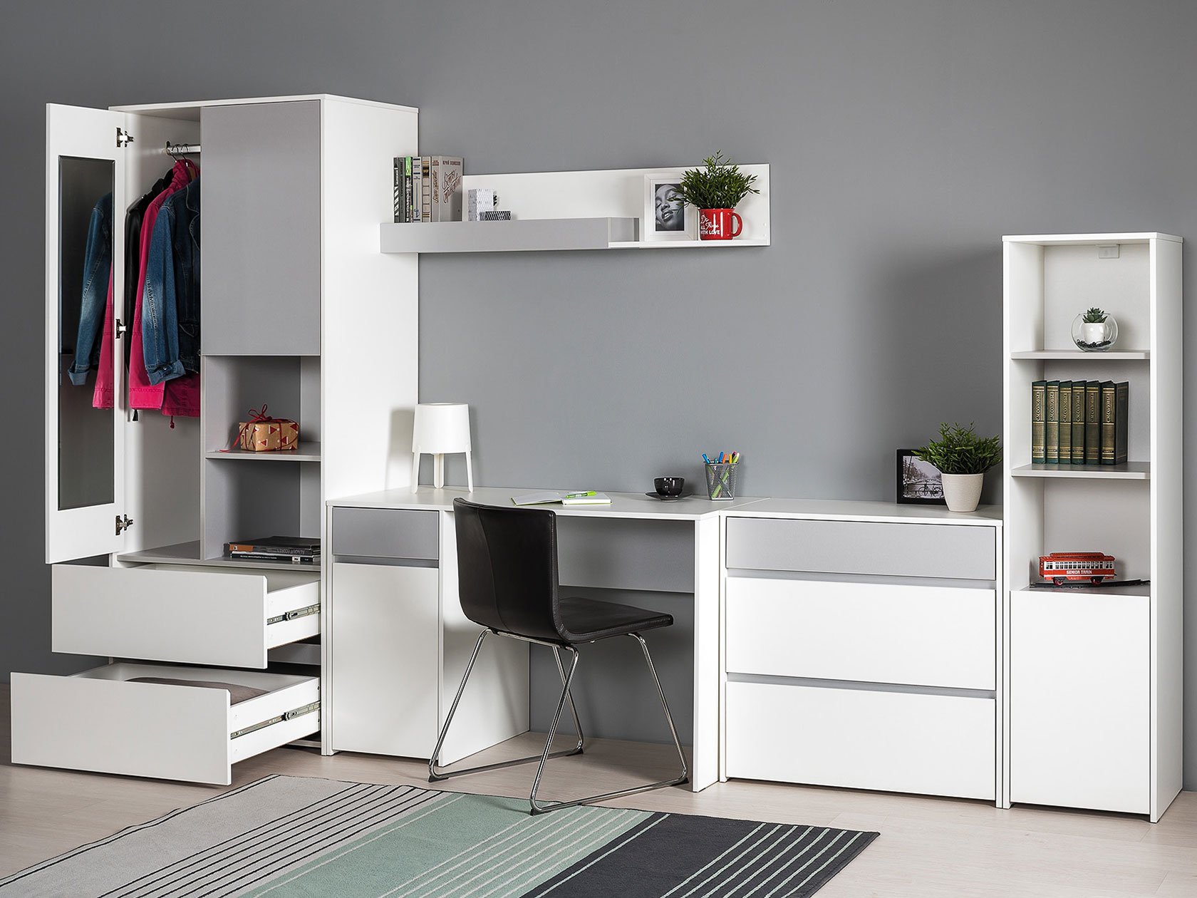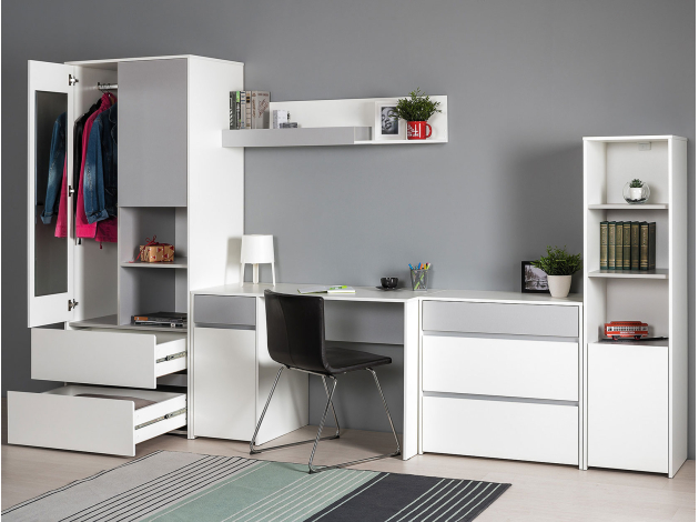 Детский шкаф Торонто поможет организовать хранение гардероба. Комбинированное наполнение обеспечит место для всех категорий одежды. С одной стороны представлено отделение со штангой для вешалок, с другой — отсек с полками для сложенных футболок и белья. Такое расположение позволяет поддерживать идеальный порядок в вещах.