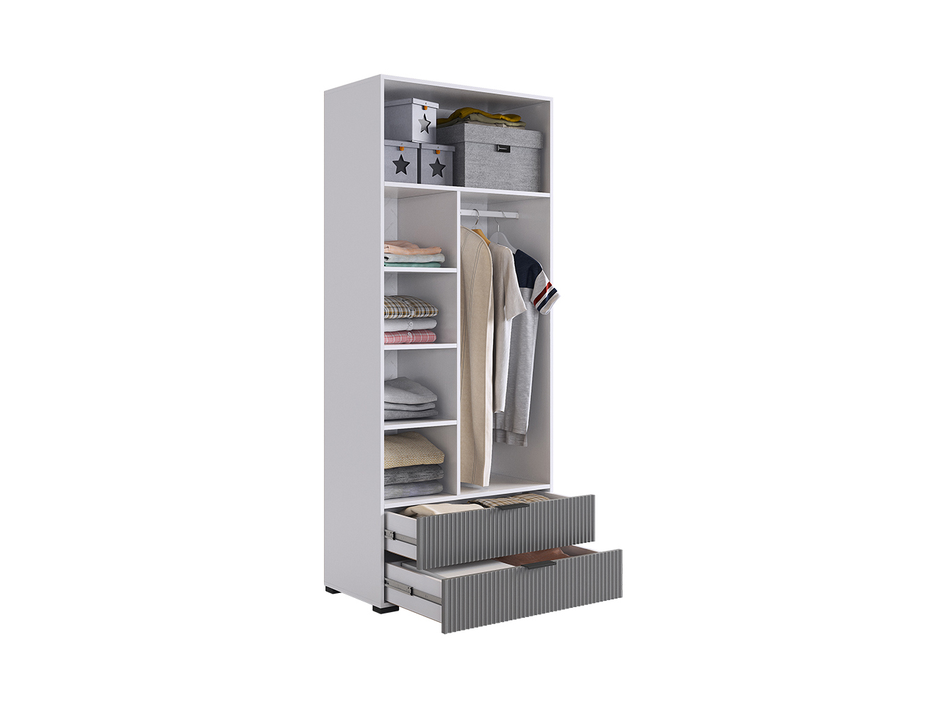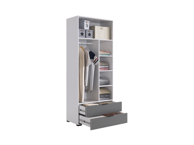 Шкаф Зефир объединил функциональность, стиль и удобство. Вместительное пространство с отделением для штанги и выдвижными ящиками обеспечит достаточно места для хранения одежды, обуви, игрушек и других вещей. Эстетичный дизайн с фрезеровкой на фасадах гармонично дополнит интерьер.