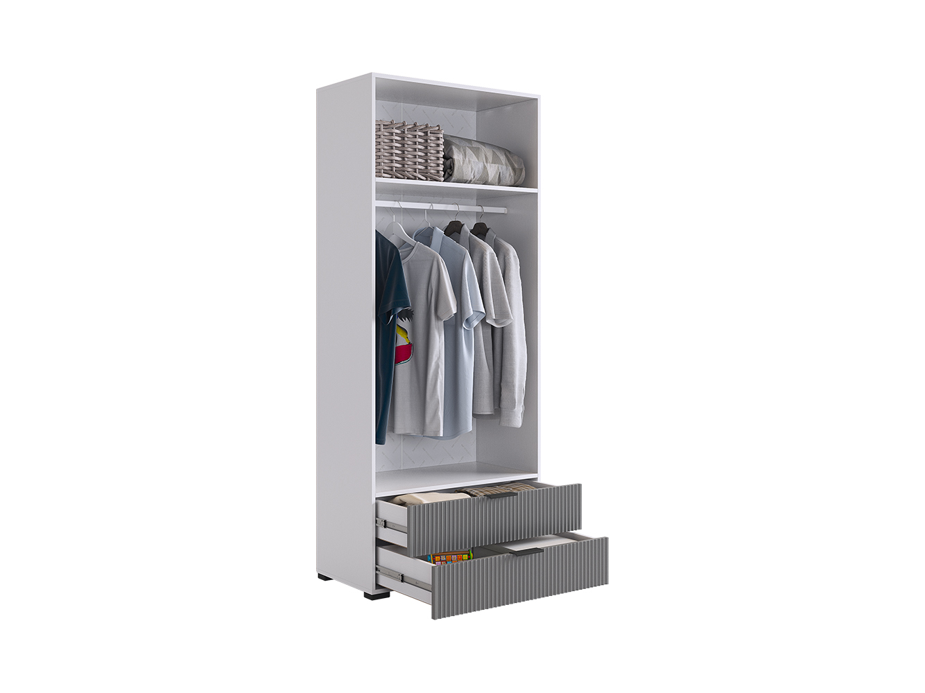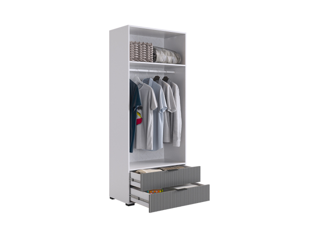 Шкаф Зефир объединил функциональность, стиль и удобство. Вместительное пространство с отделением для штанги и выдвижными ящиками обеспечит достаточно места для хранения одежды, обуви, игрушек и других вещей. Эстетичный дизайн с фрезеровкой на фасадах гармонично дополнит интерьер.
