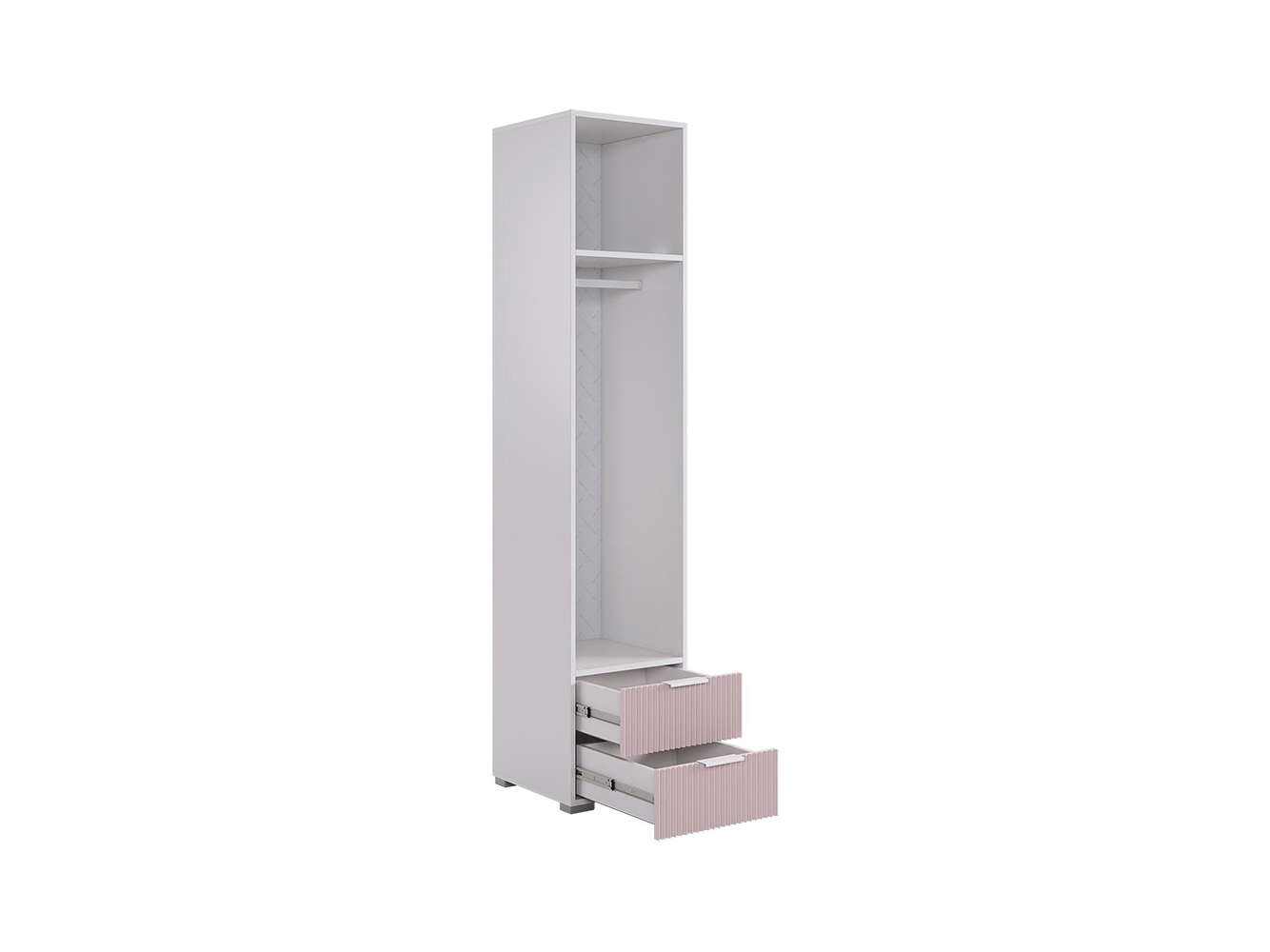 Шкаф Зефир — стильное и функциональное решение для меблировки. Полки и выдвижные ящики позволяют распределить предметы гардероба по разным категориям. Вертикальная фрезеровка на фасадах добавляет стильный акцент в оформление интерьера.
