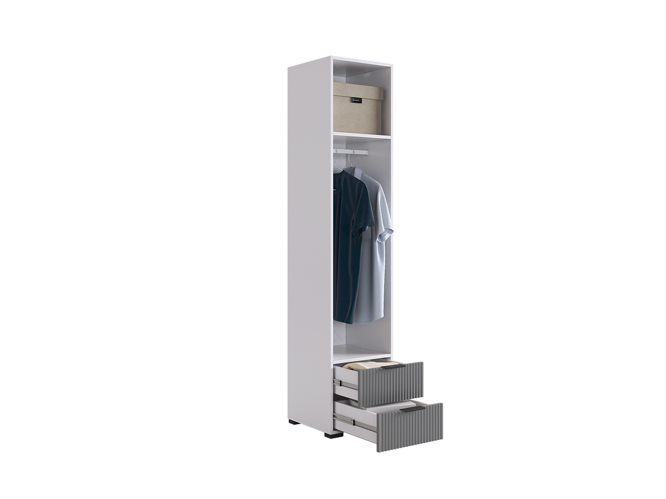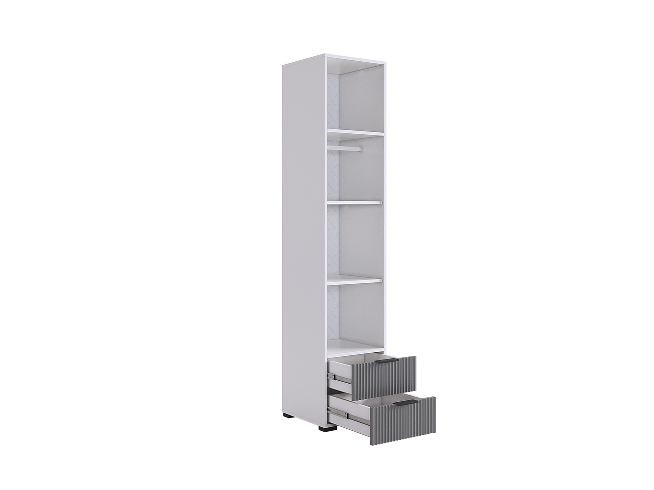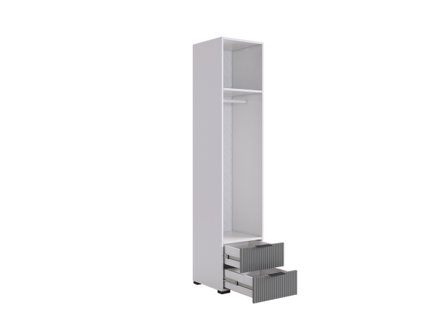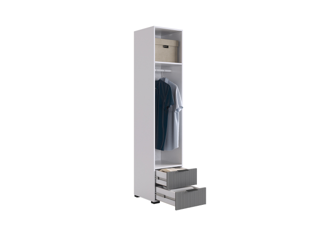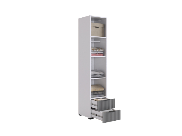 Шкаф Зефир — стильное и функциональное решение для меблировки. Полки и выдвижные ящики позволяют распределить предметы гардероба по разным категориям. Вертикальная фрезеровка на фасадах добавляет стильный акцент в оформление интерьера.