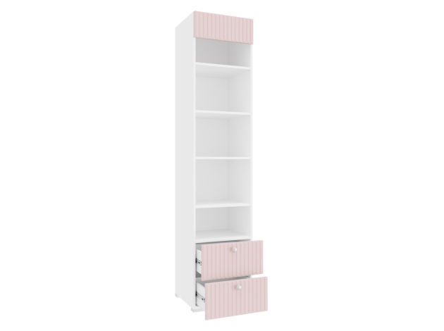 Детский стеллаж Алиса украшен стильным принтом в нежном оттенке. Модель будет отлично смотреться в современной детской или подростковой комнате и поможет поддерживать порядок в вещах.