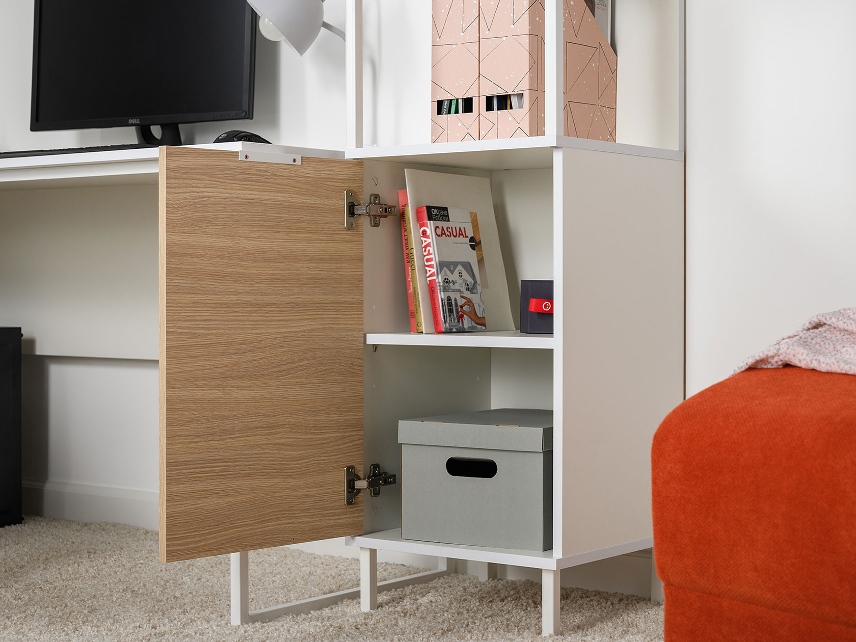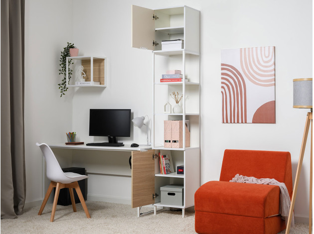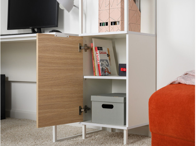 Детский стеллаж Марвэл поможет найти место для книг, папок с документами, предметов декора и различных учебных принадлежностей. Открытая конструкция с полками дополнена распашными дверцами, за которыми удобно хранить ценные вещи. Модель позволяет держать под рукой всё необходимое.