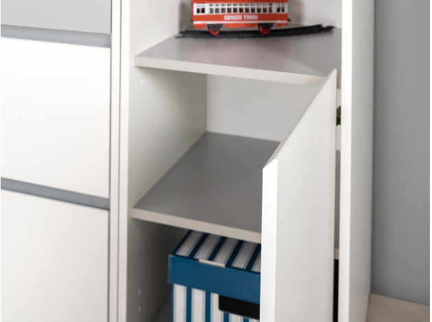 Детский стеллаж Торонто — универсальная модель для размещения книг, предметов декора и памятных фотографий. Простой дизайн в сочетании с удобной системой хранения делают стеллаж идеальным дополнением современного интерьера.