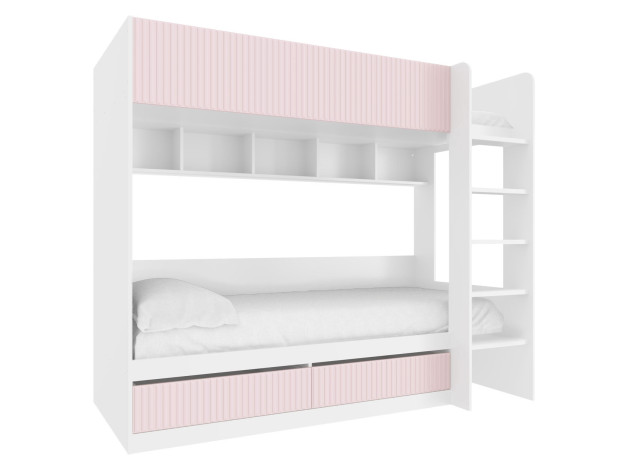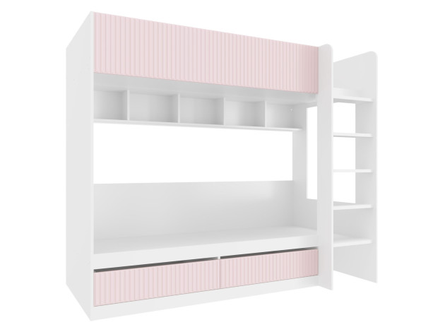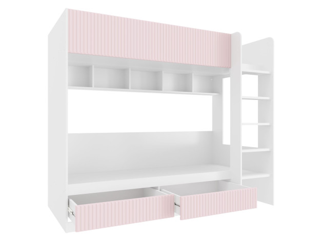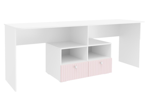 Комплект детской мебели Алиса создаст комфортную обстановку для двух девочек. Мебель продумана таким образом, чтобы у каждой из них было личное пространство для учебы и отдыха. Нежные оттенки декора способствуют приятной атмосфере и прекрасно подходят для оформления комнаты юных принцесс.