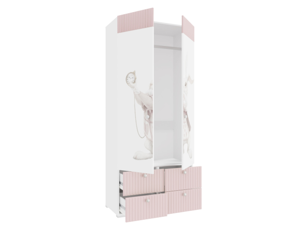 Комплект детской мебели Алиса поможет создать в интерьере сказочную атмосферу. Зона сна представлена очаровательной кроватью в окружении тумбочек и мягких пуфиков. Для хранения многочисленных игрушек, одежды и других вещей предусмотрен вместительный шкаф с забавным принтом.