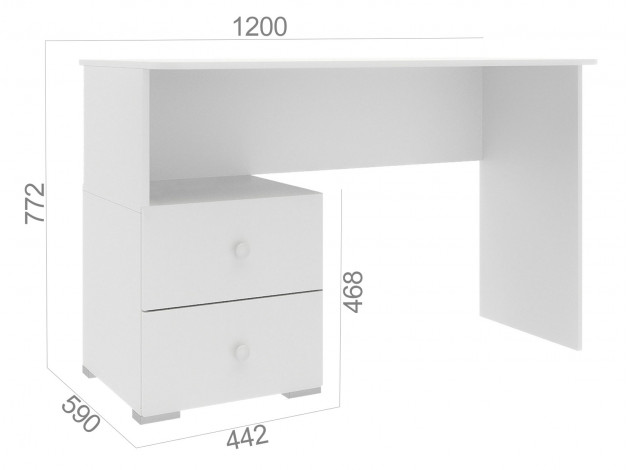 Письменный стол Абрис оснащен двумя вместительными выдвижными ящиками, где удобно хранить канцелярские принадлежности, тетради и нужные мелочи. Площадь столешницы позволяет установить лампу, монитор или ноутбук, при этом останется достаточно места для выполнения домашних заданий.
