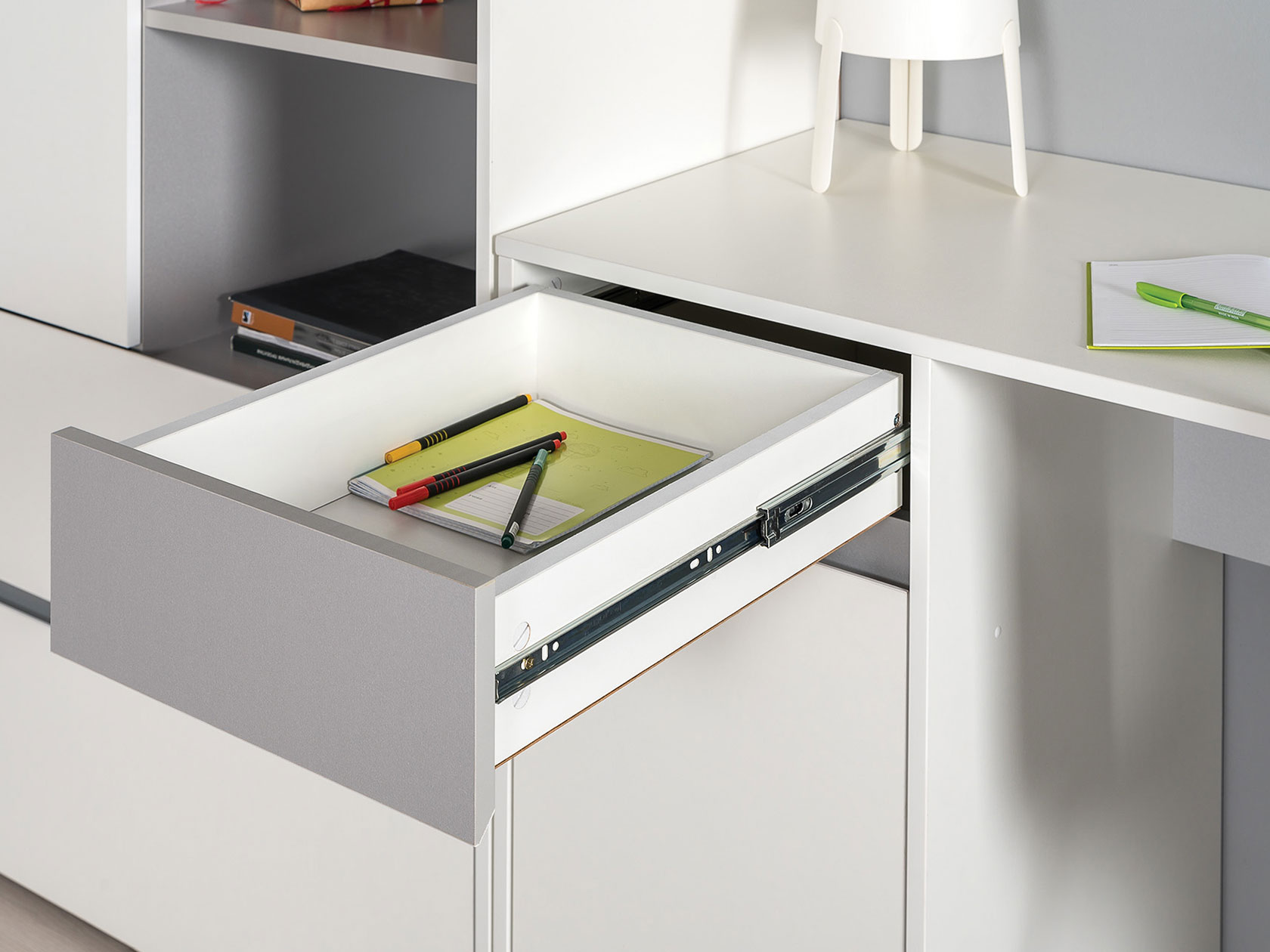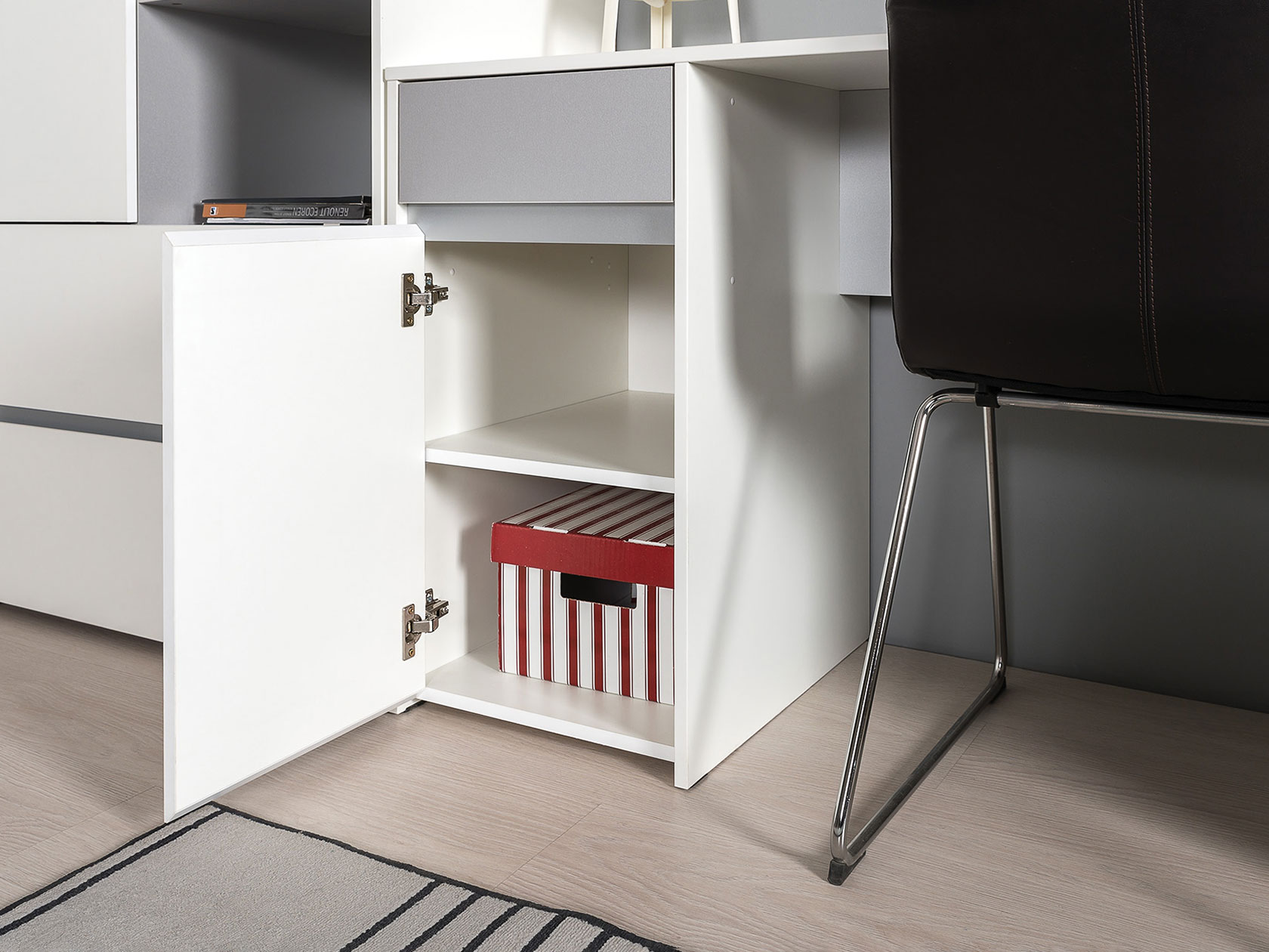 Письменный стол Торонто удачно дополнит интерьер современной комнаты. На просторной столешнице помещается ноутбук и необходимые в работе материалы. Модель дополнена тумбой для хранения различных канцелярских мелочей. Небольшие зазоры позволяют отказаться от привычных ручек и легко открывать ящик и дверцу за край фасада.