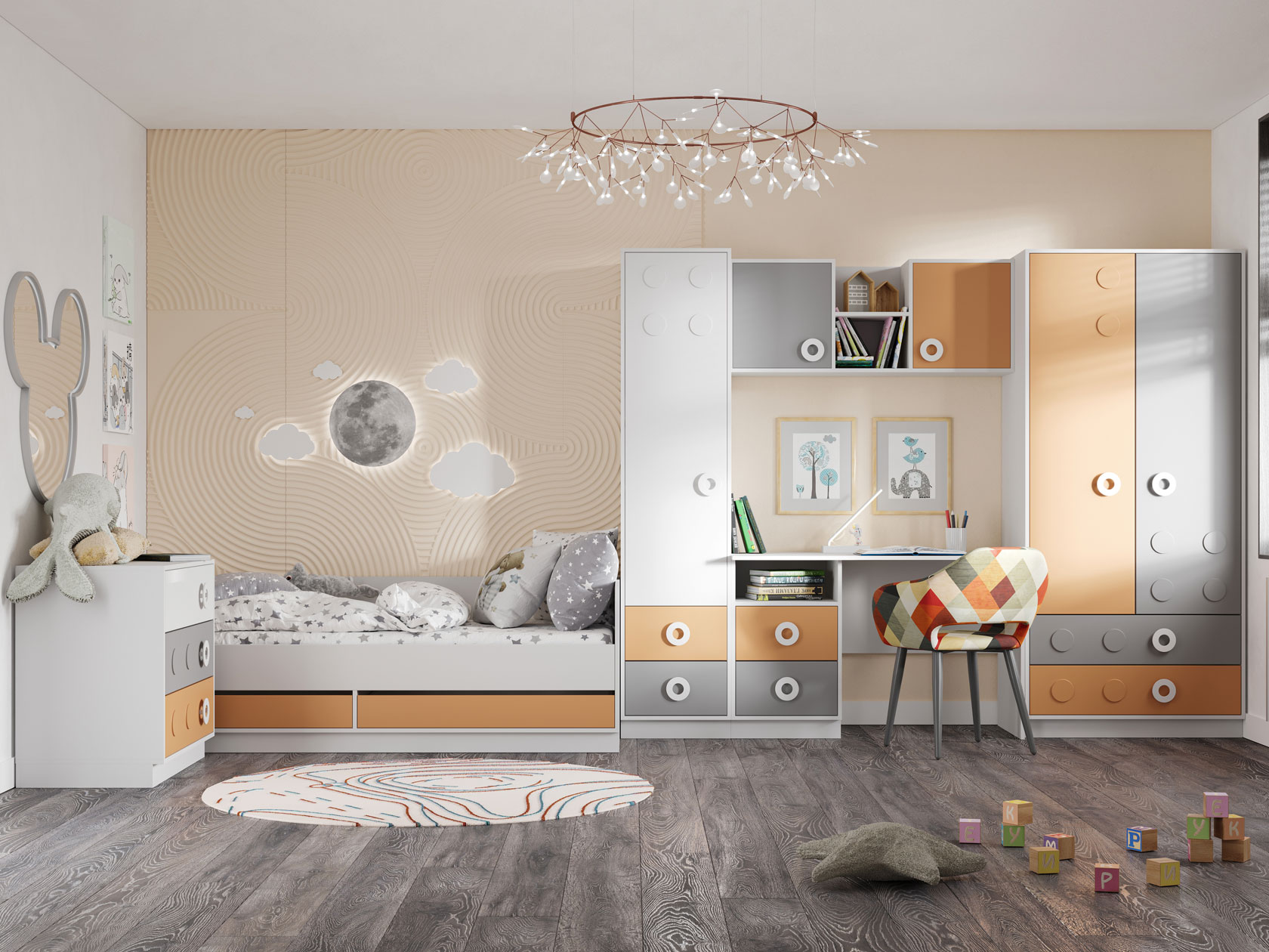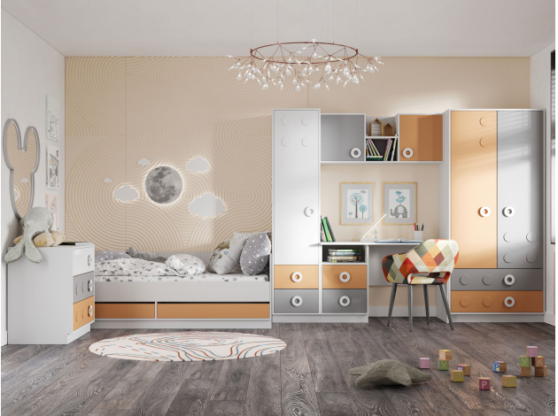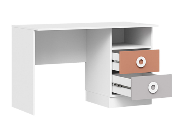 Детский письменный стол Турбо подходит для оформления небольшой комнаты. Тумба с ящиками организует хранение школьных принадлежностей, а на широкой столешнице можно разместить компьютер и учебники. Внешняя фурнитура в виде выпуклых ручек-кнопок привлекает внимание и создает яркие акценты.