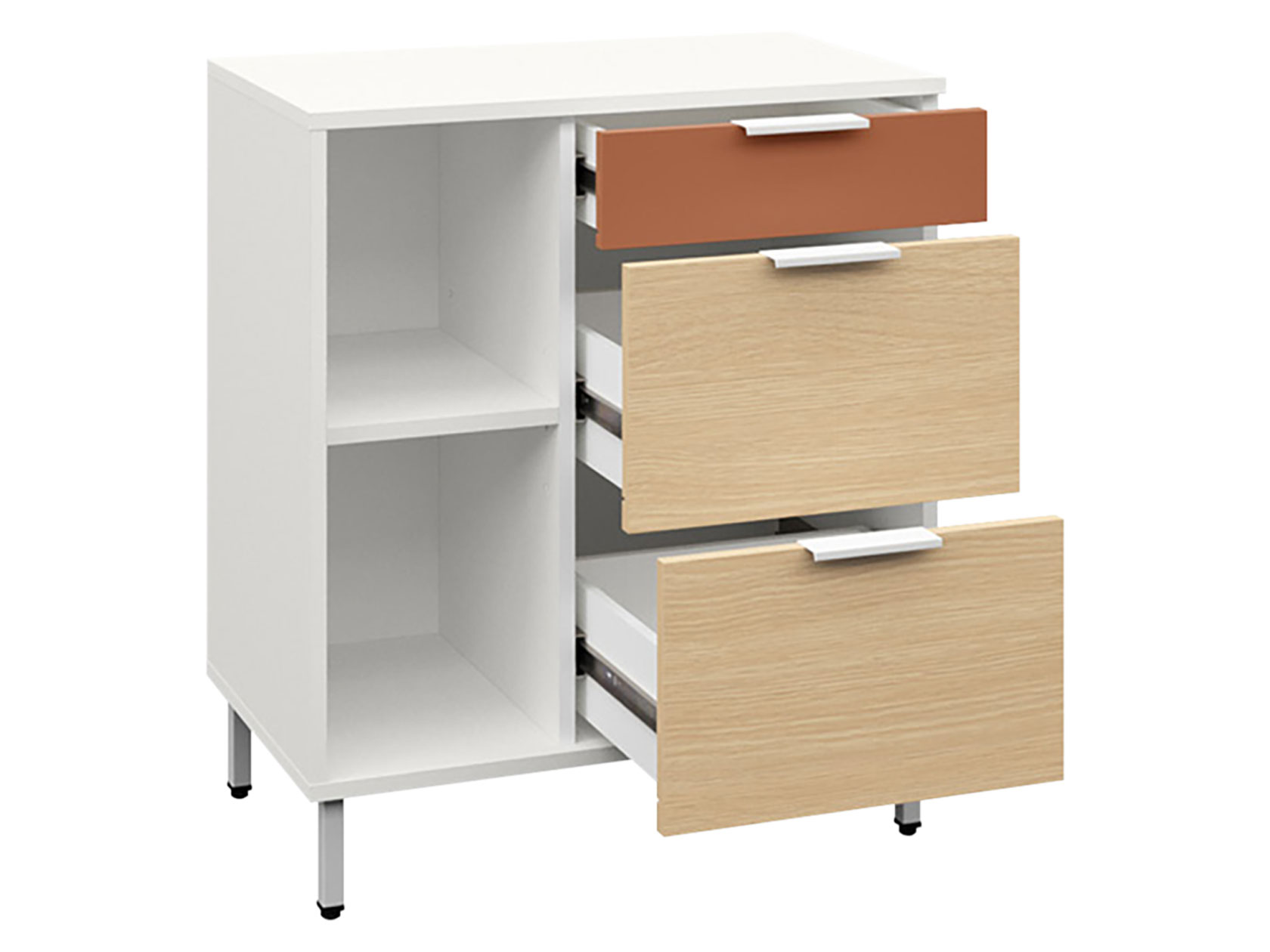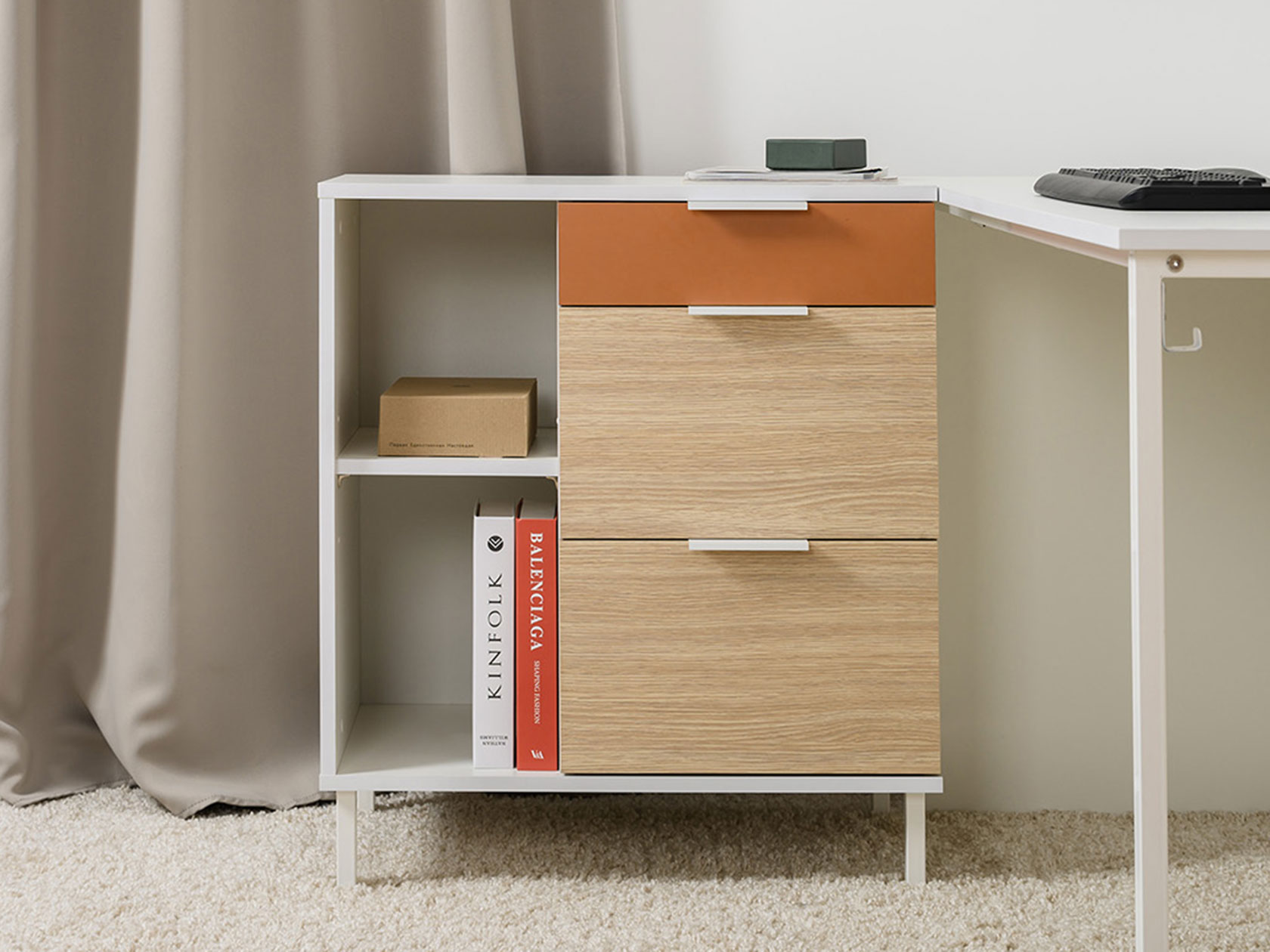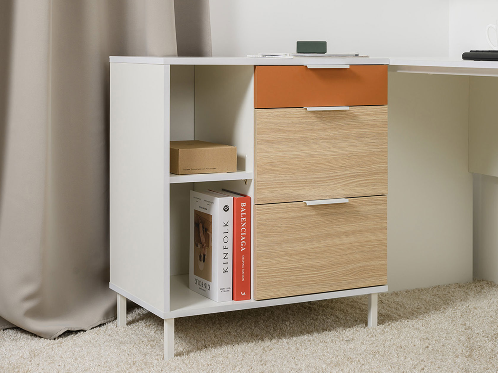 Детская тумба Марвэл — идеальное дополнение письменного стола. Выдвижные ящики и открытые ниши позволяют организовать хранение тетрадей, книг и канцелярских принадлежностей. На поверхности можно разместить небольшую лампу или рамку с фотографией, чтобы разнообразить интерьер.