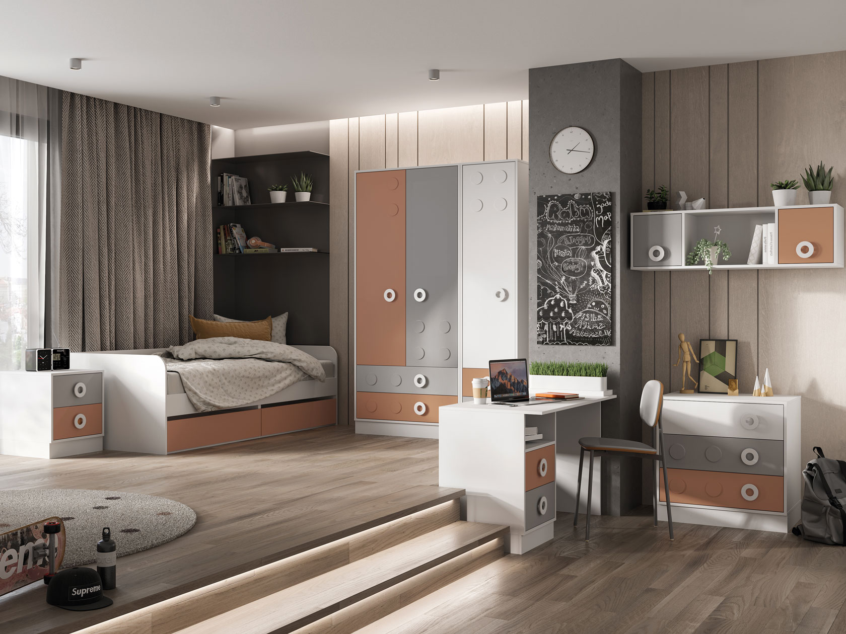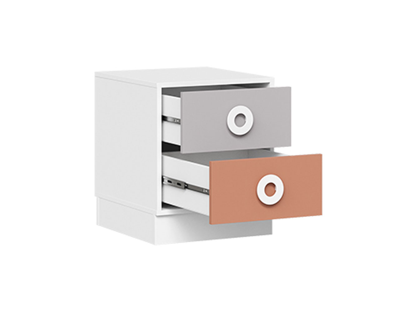 Тумба для детской Турбо с двумя выдвижными ящиками позволит держать нужные мелочи в быстром доступе. Модель можно разместить рядом с кроватью или дополнить систему хранения. На поверхности удобно поставить ночник или будильник. Яркий дизайн с объемными элементами оживляет интерьер.