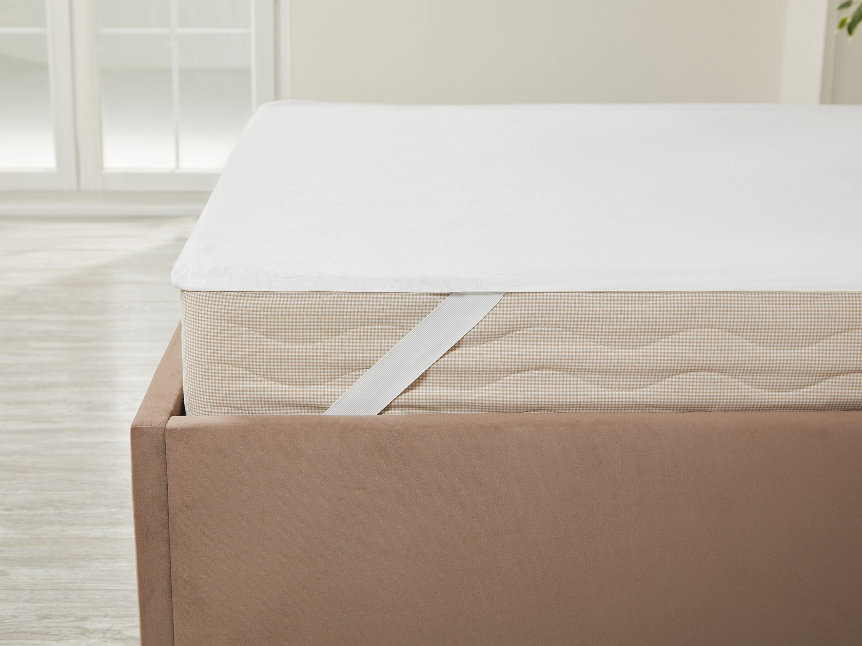 Взяли сразу 3 шт.к нашим новым матрасам. Приятный на ощупь,простынь по нему не скользит,не шуршит. Эффекта парника нет. Матрасы защищает. Мы довольны.
