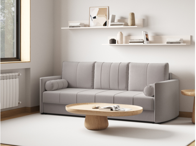 Прямой диван Айви станет практичным дополнением большой гостиной или элементом для зонирования в квартире-студии. Тканевая обивка со всех сторон позволяет установить модель в любой части комнаты. Удобный механизм трансформации легко превращает диван в спальное место. Под сиденьем расположен бельевой короб. Это решение помогает рационально организовать пространство и хранить постельные принадлежности. Декоративная строчка в виде ровных линий на обивке и подушках гармонично сочетается с закругленными подлокотниками, подчеркивая аккуратный облик модели.