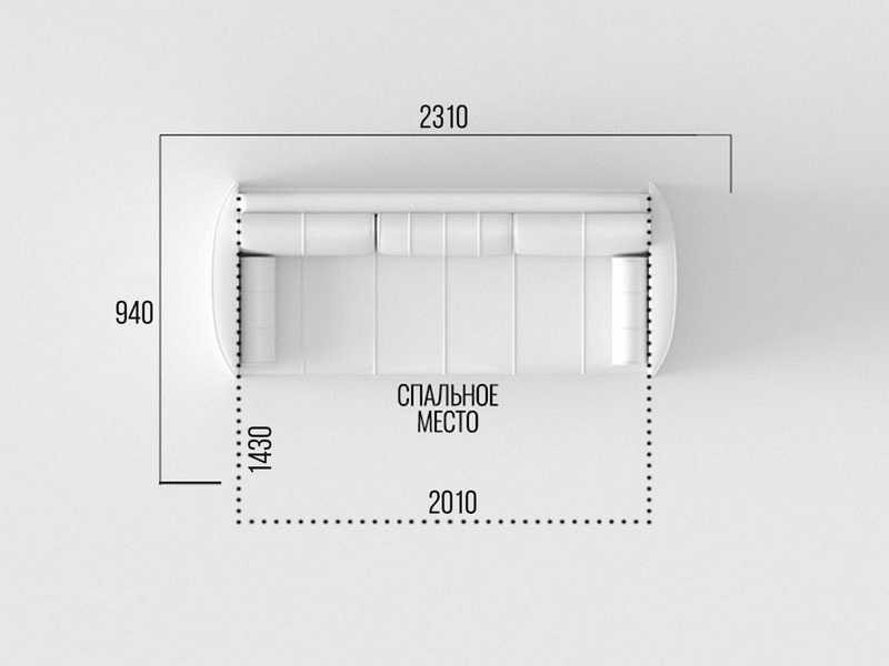 - Посадочное место без подушек (ШхГ): 230 х 73 см.